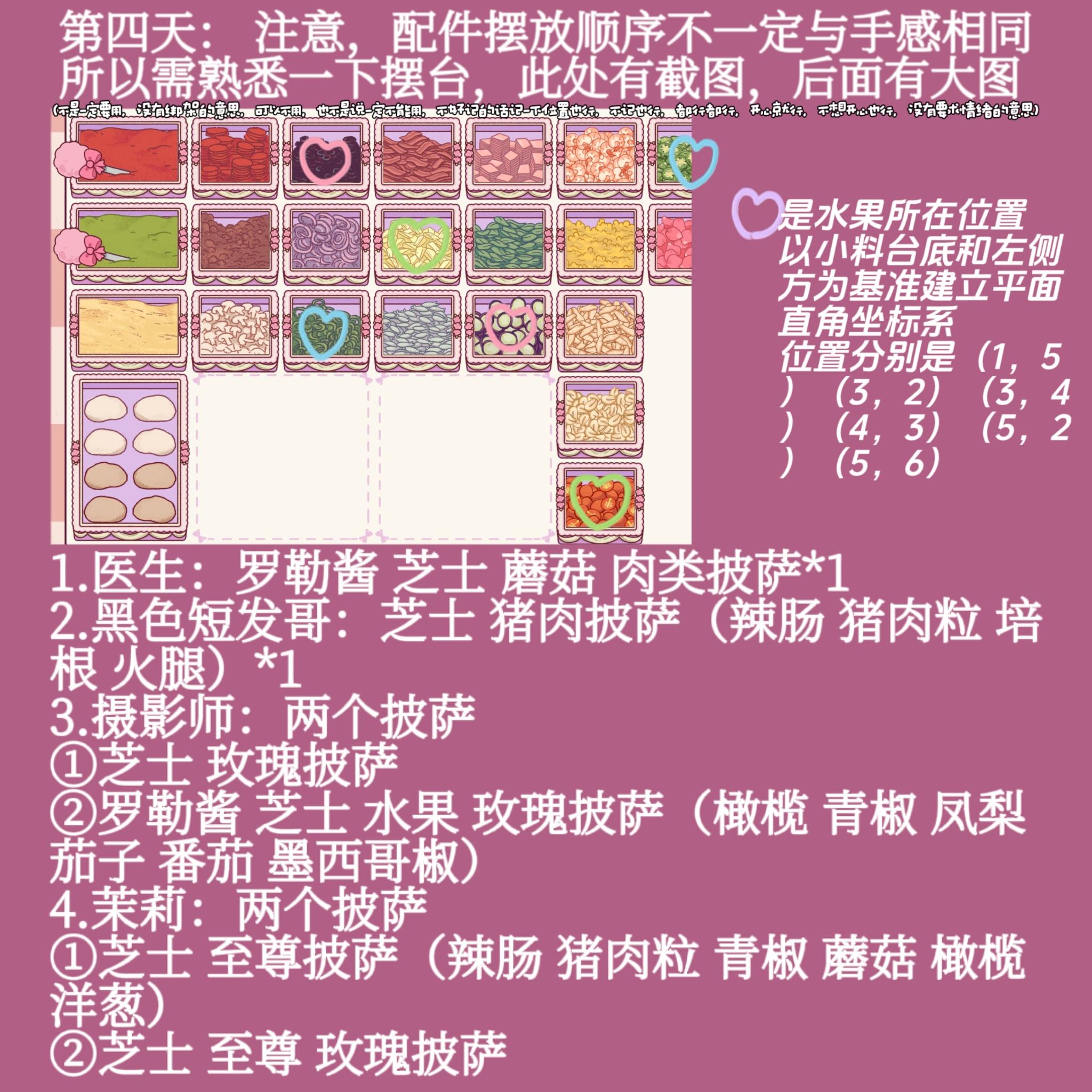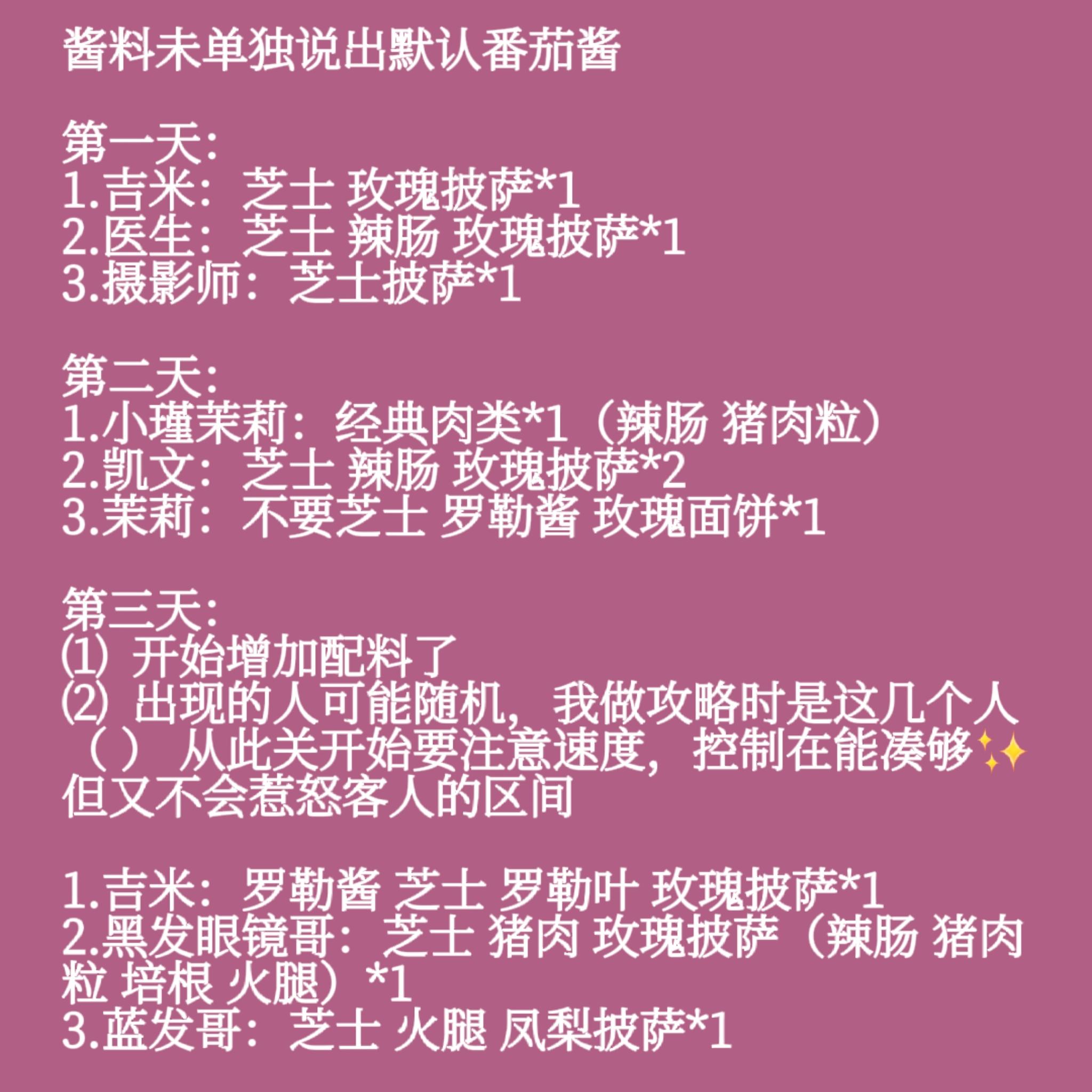 #可口的比萨 #可口的比萨攻略 #可口的披萨美味的披萨 图片使用前注意: ⑴ 玫瑰需要手动点 ⑵ 玫瑰是蔬菜 ⑶ 酱料未单独说出默认番茄酱 ⑷ 屏幕上出现的花和心点击+15💖但只在厨房里出现 ⑸ 第八、十一关完全手动哈完全!要小心 哎一不注意开活动了我立刻来了! 为方便使用还是放图片里了按需啊按需(哈哈这个笨球没发论坛里)