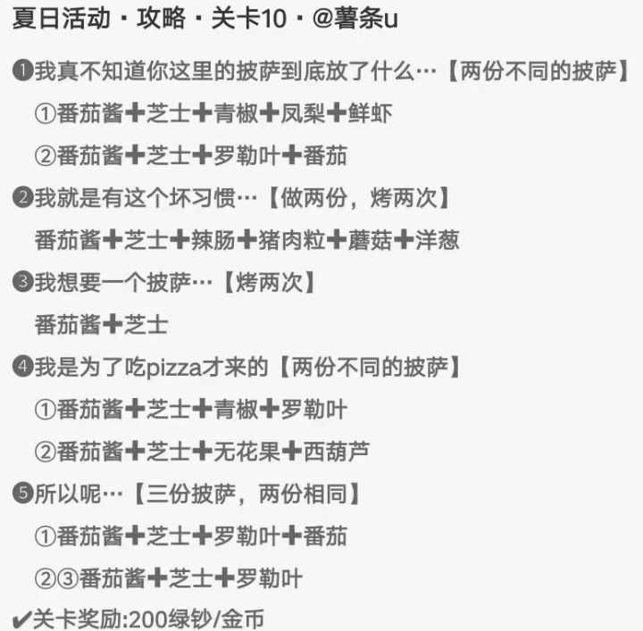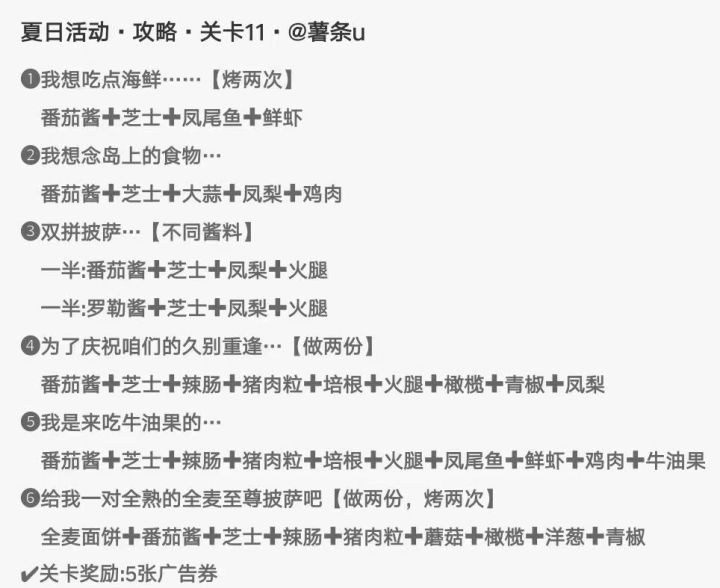 11关已修改点开5-8关里面有1-4关的攻略哦夏日篝火节5-8关攻略来咯https://www.taptap.cn/moment/689993150202120544?share_id=50e04caa4fc0&utm_medium=share&utm_source=copylink#可口的比萨