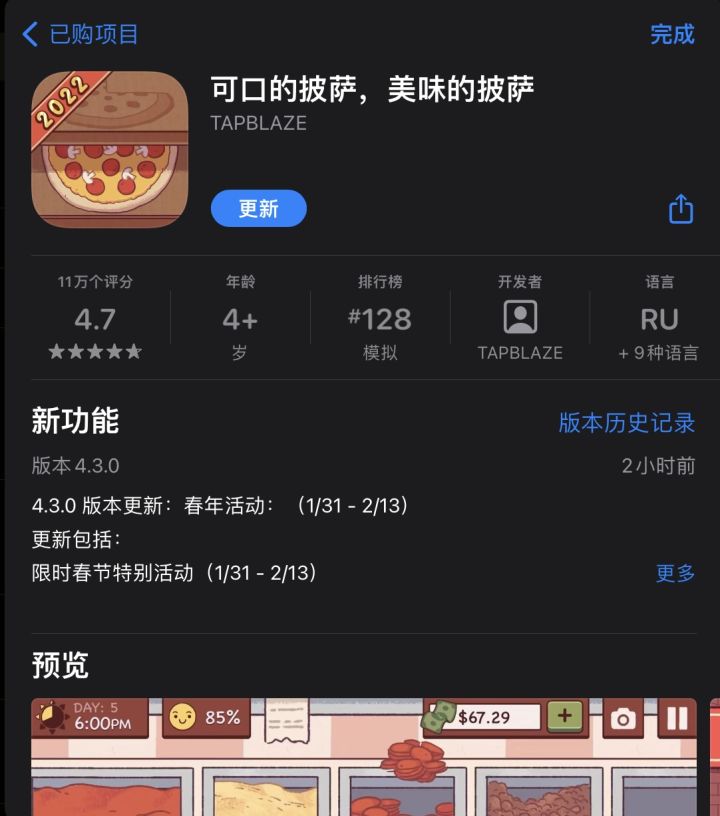 🧧春节新版本4.3.3现已更新!快快更新版本参与1/31-2/13春节活动,把虎年的好运带到你披萨店!iOS请从已购项目中更新;安卓请从官网更新。 ❗️如果appstore不显示游戏更新,或点游戏页面时显示无法连接appstore。可以尝试如下方法:确保你已经在游戏设置—账号头像里面注册并登录了Tapblaze账号,如图4(非常重要!如果可以在另一台设备上登录查看下是否同步了进度则更保险)然后卸载游戏,再从appstore里重新下载新版本。