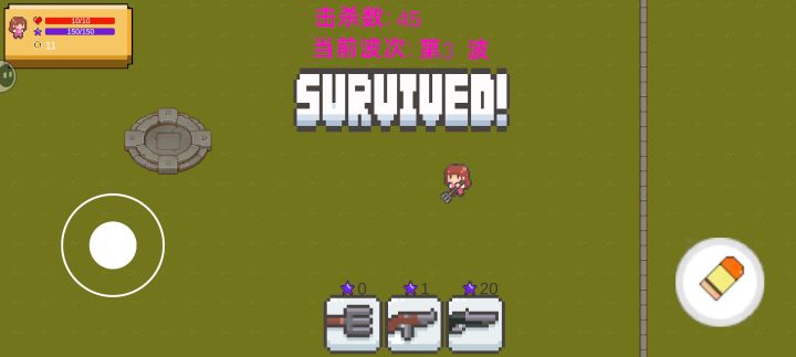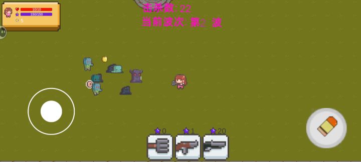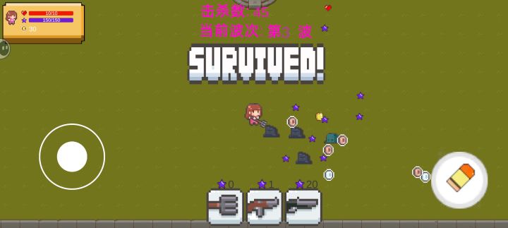 战斗表现与平面肉鸽射击类似,有自动索敌范围,攻击还是需要手动操作。三种武器攻击特效有差别,很好辨认,枪械的打击感有一些。