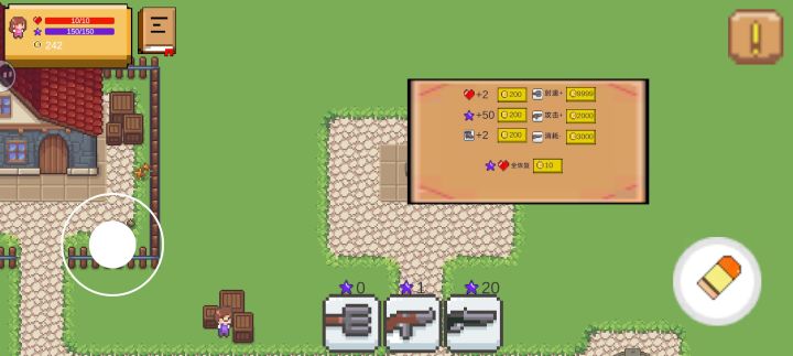战斗以波次进行,一次战斗大概三波怪,战斗中可切换冲锋枪和霰弹枪,每次攻击消耗蓝,可以从敌人掉落中进行补充。打完还是从传送阵回家,获得的金币可以购买种子,去下面的菜园里种植,再经过一次战斗即可收获。