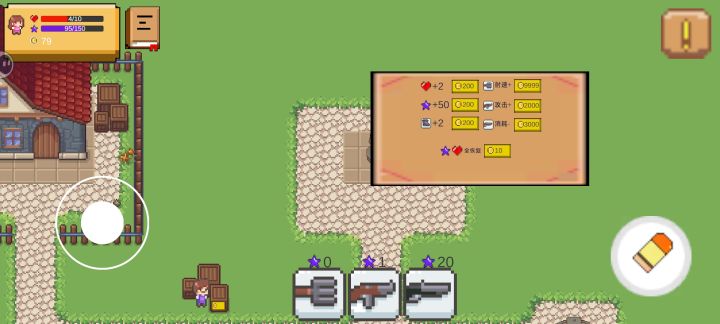 在女神像位置可以打开强化面板,消耗金币可以提升角色属性或武器伤害。种植的农作物可以出售获得金币,再购买种子实现循环产出。数值都是固定值,升级需求跳变较大,养成提升比较缓慢,是单机独游的数值结构。