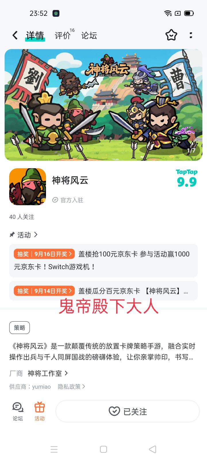 《神将风云》亲爱的未来主公们:欢迎踏入这片萌化三国的奇幻战场!《神将风云》是一款Q版三国卡牌回合制手游,在这里,威震历史的猛将化身憨态可掬的Q萌武将,搭配深度策略布阵与华丽合击技能,带你体验“指尖调兵遣将,谈笑间一统山河”的快感!今天给大家带来官方游戏群福利!加入官方游戏群即可领取礼包,快快参与吧!【参与方式】点击右上角关注并在评论留言回复:已关注加群点击链接加入群聊【神