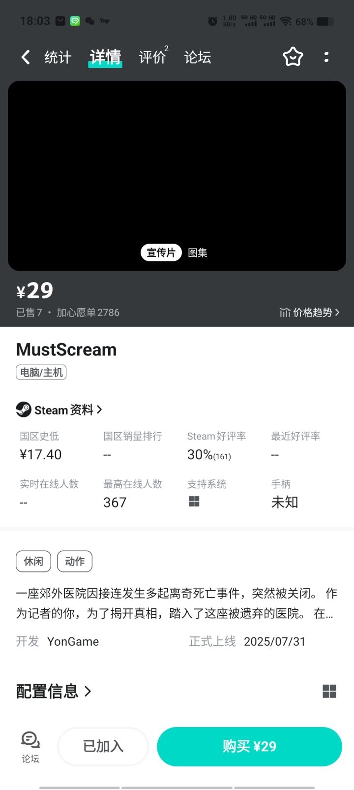 《MustScream》这款声控恐怖游戏在Steam上架后获得了很多主播的关注。游戏的核心玩法是通过麦克风输入声音来控制角色行动,尖叫越大声跑得越快,没有麦克风的话角色就只能缓慢行走。这种设计很有创意。