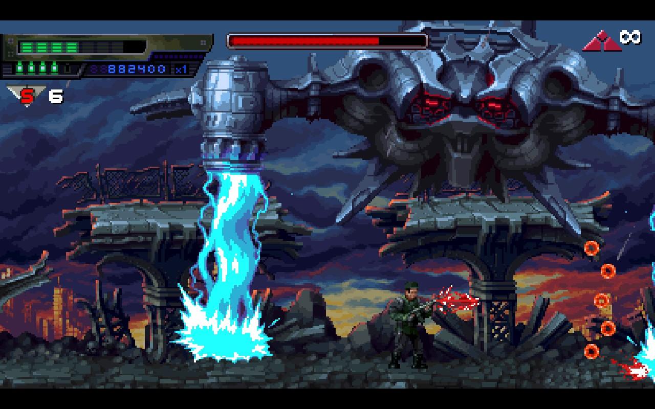 从类型上来说,本作算是复古向像素画风的关卡制平台过关游戏,有点像《魂斗罗》或者《人间兵器》那种。