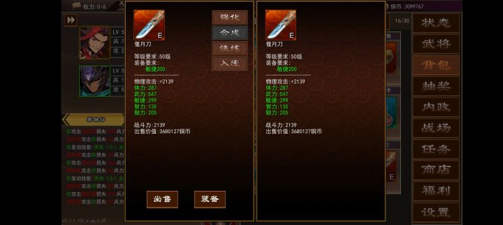 想要做出高属性装备,首先就要有个高属性的蓝装,然后再买四个普通蓝装,高属性蓝装在中间,其他四个随便放,决定装备属性的只有中间的那个装备的数值。但高属性的蓝装只有在上面图一也就是抽奖界面获得,而且还是个概率事件,刷新出来不一定是高属性,高属性也不一定能抽中,所以想做出极品装备是个很耗费时间和元宝的事情。而且就算抽中了极品蓝装,接下来还有个挑战就是合成,合成是有倍率的,蓝装合黄装的倍率在1.2-1.8