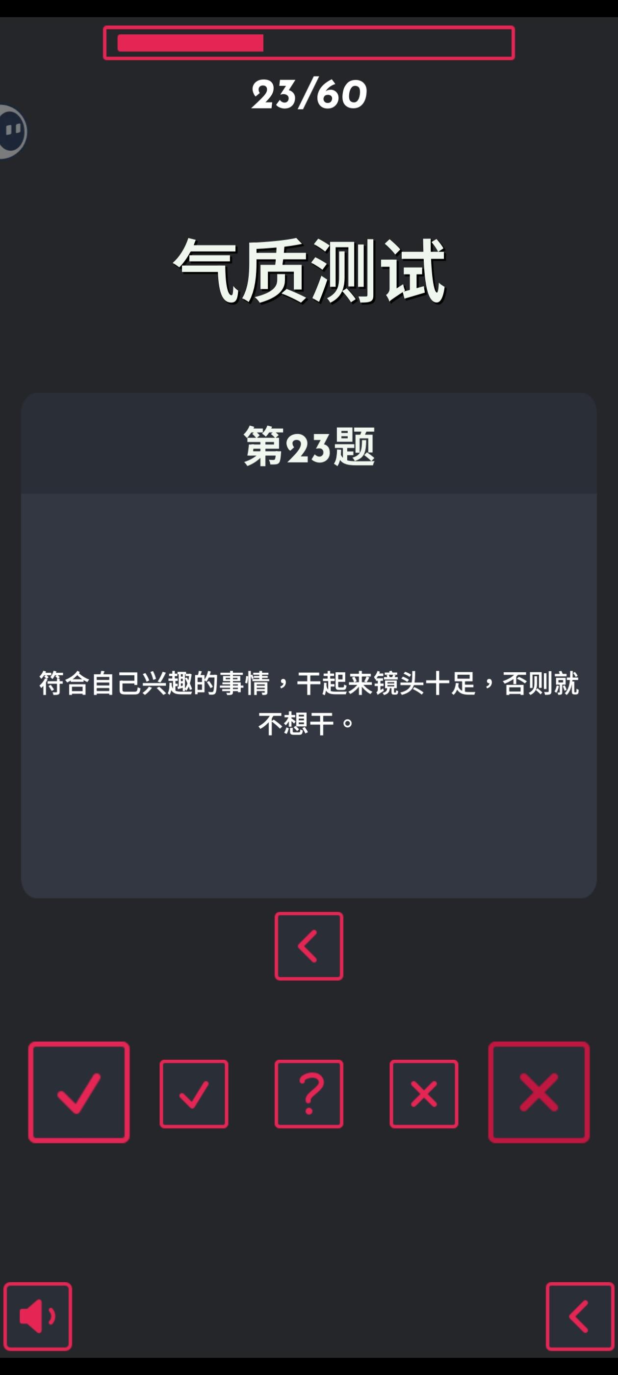 返回键能不能搞个确认啊……答了大半一不小心误触全没了,什么时候改了我把评分打回去,体验太糟糕了!