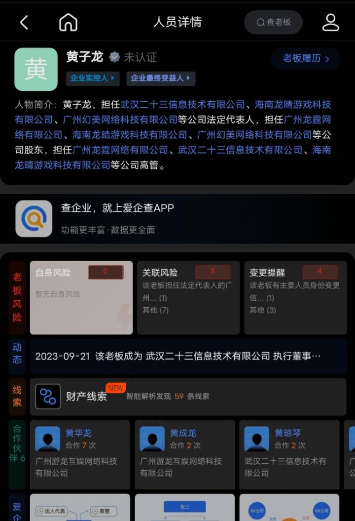 黄子龙 黄龙华 黄成龙三个人背后关联注册的游戏公司有十几家 换皮圈钱