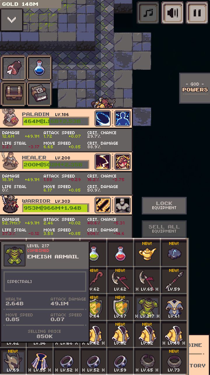 被困在第五次转生好久,通过挂在地底世界好久刷抓怪箱抓怪升级才勉强过了。。。有到了十转的吗,任务里说十转解锁spectral装备的合成哦?而且是任何装备?天赋我全点了装备掉落。。。每周挑战也打不过了,那个恶魔骑士我也是上周的每周挑战打得送的,这游戏才0.44版本又不是正式版苹果玩不了要不我就充钱了。。。