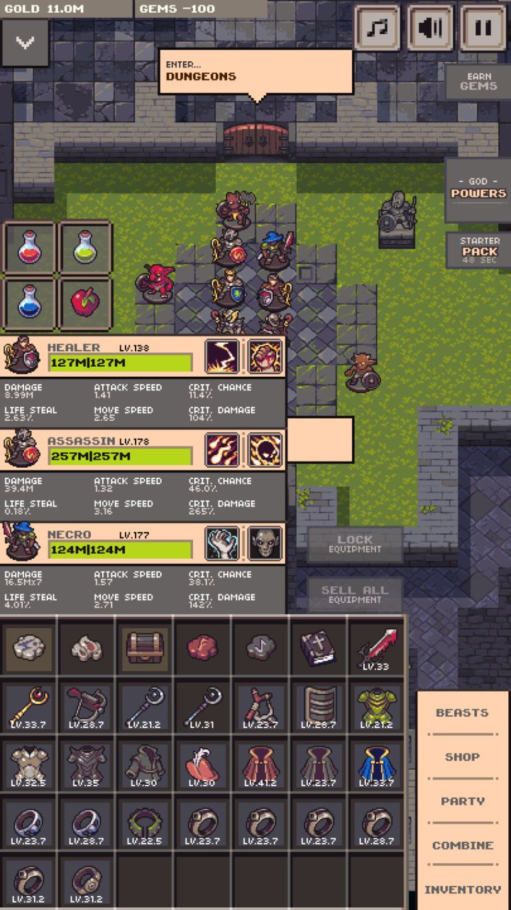 八点起来给手机充电并刷图,睡到十点起来发现战利品是真的强!!一千多级的装备都掉了给我!!!而且现在解锁了暗金装备的合成简直是无敌!!图二的带火的红色衣服直接让我射手的攻击力变成了原来的十倍!所以说快速升到十转是不亏的全部合成到原有装备后是下面这样的生命值爆长几倍!!!又可以愉快的虐图了下面是比较好用的宠物给射手出吸血暴击攻速肉保证存活,让宠物输出。。。