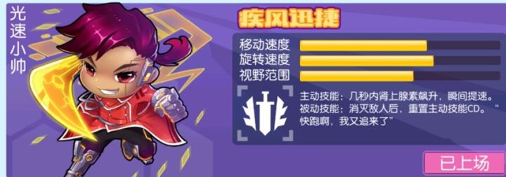 英雄名字:光速小帅英雄售价:默认拥有英雄类型:攻守兼备的新手型英雄适用群体:目标清晰,行动果断的玩家主动技能:瞬间加速方块使用技巧:在追捕玩家或者逃离的时候,能瞬间加速,打对面玩家一个措手不及。英雄名字:小妖刺刺英雄售价:5原石英雄类型:攻击型英雄适用群体:善于近战的狂战玩家以及策略性的埋伏玩家主动技能:能瞬间射出一个刺块使用技巧:在自身体积较小,对方体积较大的情况下,在极近