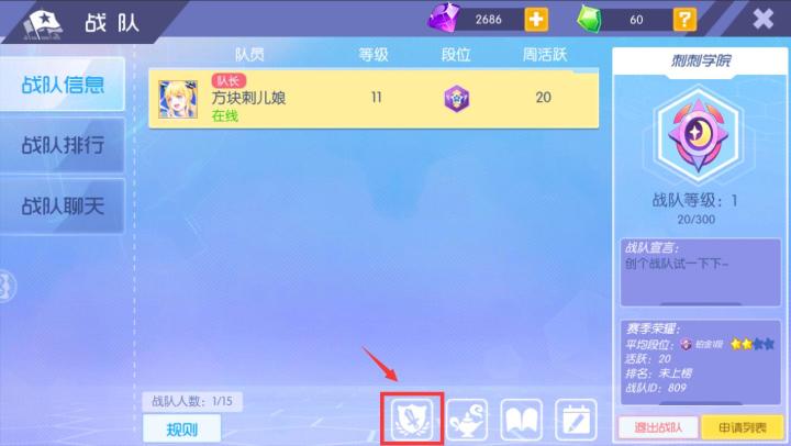 战队1V1超燃激战玩法上线!ヾ(≧O≦)〃嗷~战队单挑,凭实力说话,一决胜负吧!~玩法入口:在战队界面中,点击战队赛图标即可开启 积分赛玩法(战队成员组队进行排位,获得积分,晋级联赛)1、每周2—周4,19:00-21:00开启2、战队积分,小组赛开启后,战队成员可通过参与排位模式,为本战队获得积分,获得的积分数量根据玩家排名、战绩等情况获得。成绩越高积分获得越多。3、和战队内玩家一