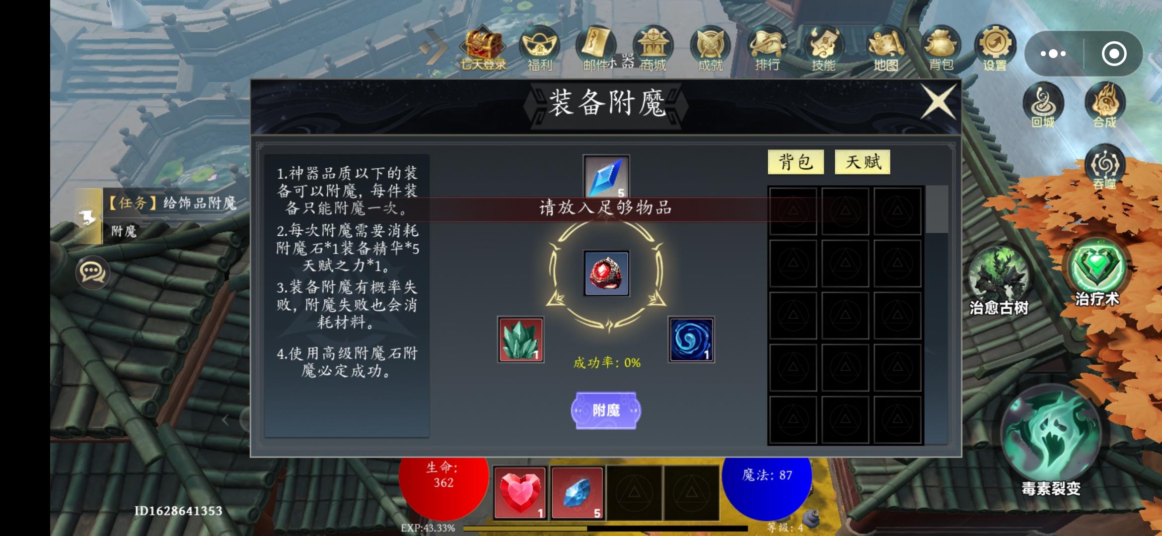 任务物品是不是给错了??只需要一个附魔石,给了五个,需要五个装备精华,只给一个,任务进行不下去,劝退!而且一个手游,玩法非要仿端游?场景胡里花哨都不想说了