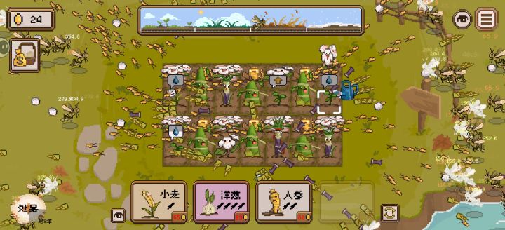纯攻速,谁来都不好使就是没事干随便发的,没想到真有人看,甘蔗种多了是可以叠加,主力就是水稻刷钱,人参2级和3级都只是给自己周围一圈回血,所以尽量放在3*3的中心,基本是钱上去就买小番茄,然后卖掉,你们可以看我置顶评论