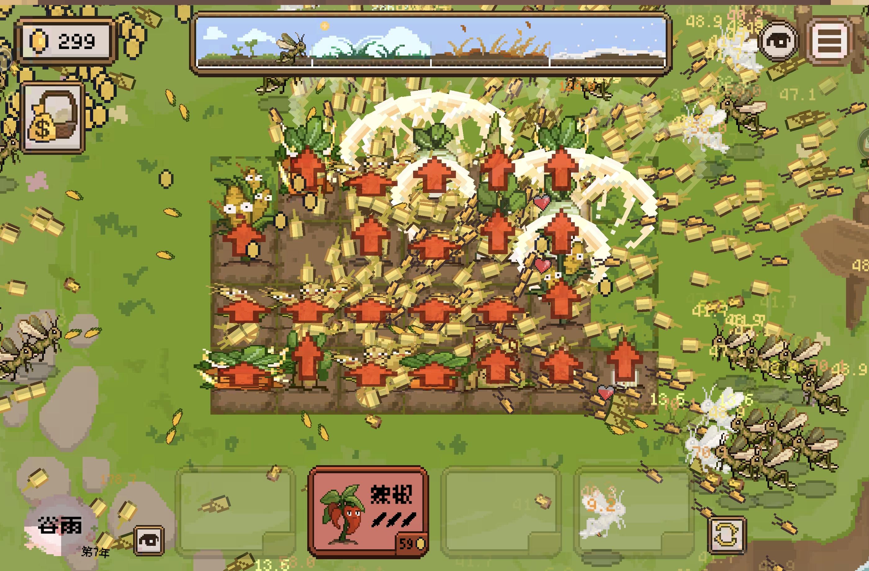 最近想了一些更新的内容,但是还是觉得植物池子已经挺深了,有点不想再加额外植物了,所以就想了一些额外的玩法,最后锁定了每年结束时选择一项道具进行提升,还有一些局外内容作为初始道具可以携带进游戏。如果大家有好的点子欢迎随时提出来~#丰收轮回