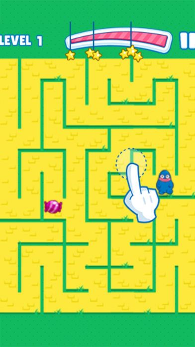 游戏中,怪物迷失在迷宫之中,错综复杂的迷宫之中隐藏着一颗糖果。到达的路径只有一条,你能帮助小怪物找到唯一那条路径吗?