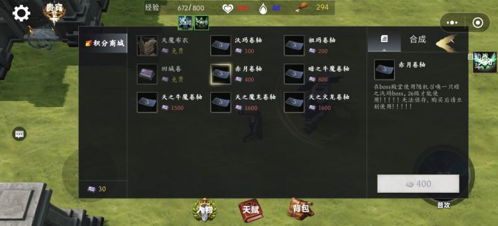 第一次见传奇类游戏有体力。初始300。打一个boss.2点,商城卖体力5块钱50点
