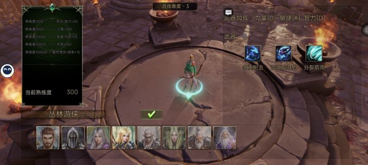 点进去就是绝望平原,此地图的定位是练功房难度1到10,难度11到20,难度21到30,分别对应不同的升级材料每一个属性提升都是,每100级是分水岭,对应着不同的升级材料,建议是通关到10难度,解锁了11难度,卡难度使用扫荡卷加快成形速度,由于扫荡卷是500钻石一个,各位请自行衡量收益共有四个属性加成,由于在此地图中有3个属性是有杀怪提升多少点属性的特性,分别是攻击,体力,三维,这里先各点一级