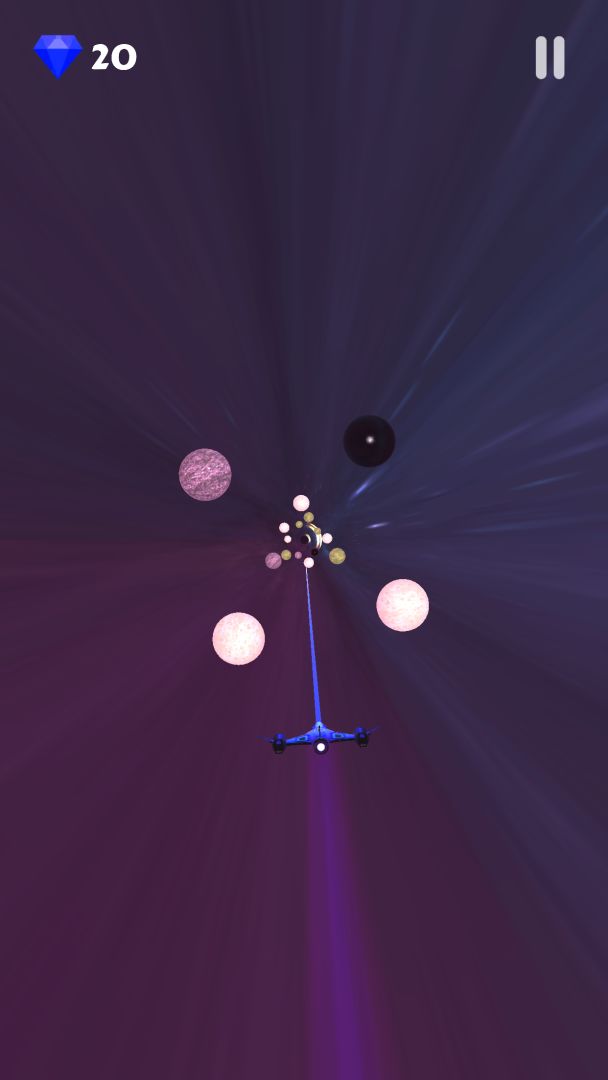 玩家控制飞船飞越黑洞,在黑洞里有很多星球阻挡前进。