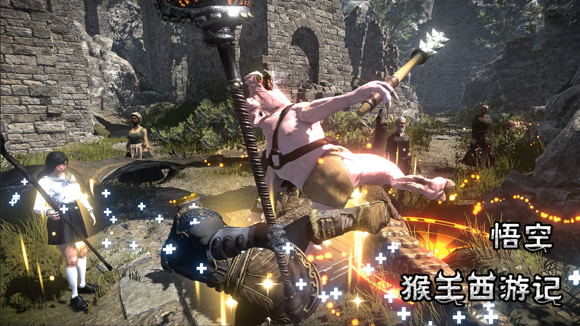 玩法类似怪物狩猎猎人,游戏默认初始5人,分别为,黑悟空、唐三娘、猪七戒、鲨僧、白聋马,玩家只能操作黑悟空。玩家不同城镇会有不同的村民(这部分还为完成),可以承接到不同的除妖任务,任务大多数都在迷宫内完成(也未完成),玩家需要在限定时间内找出迷宫内的妖怪,并且降伏,妖怪会在残血逃跑(其实这部分也未完成...