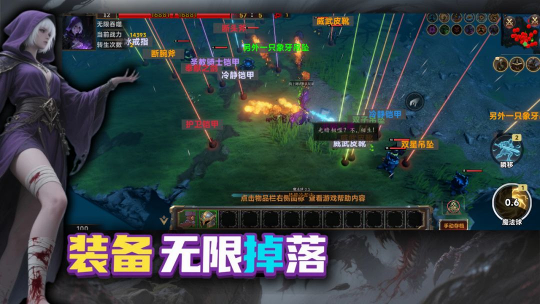这是一款类暗黑风格打宝升级游戏,集肉鸽,BOSS挑战,技能打造等诸多玩法,游戏中装备无限掉落,属性完全随机,可以吞噬多余装备获得属性永久增强,击杀精英怪和BOSS也可获得属性永久增强,更多内容,请游戏中体验。
