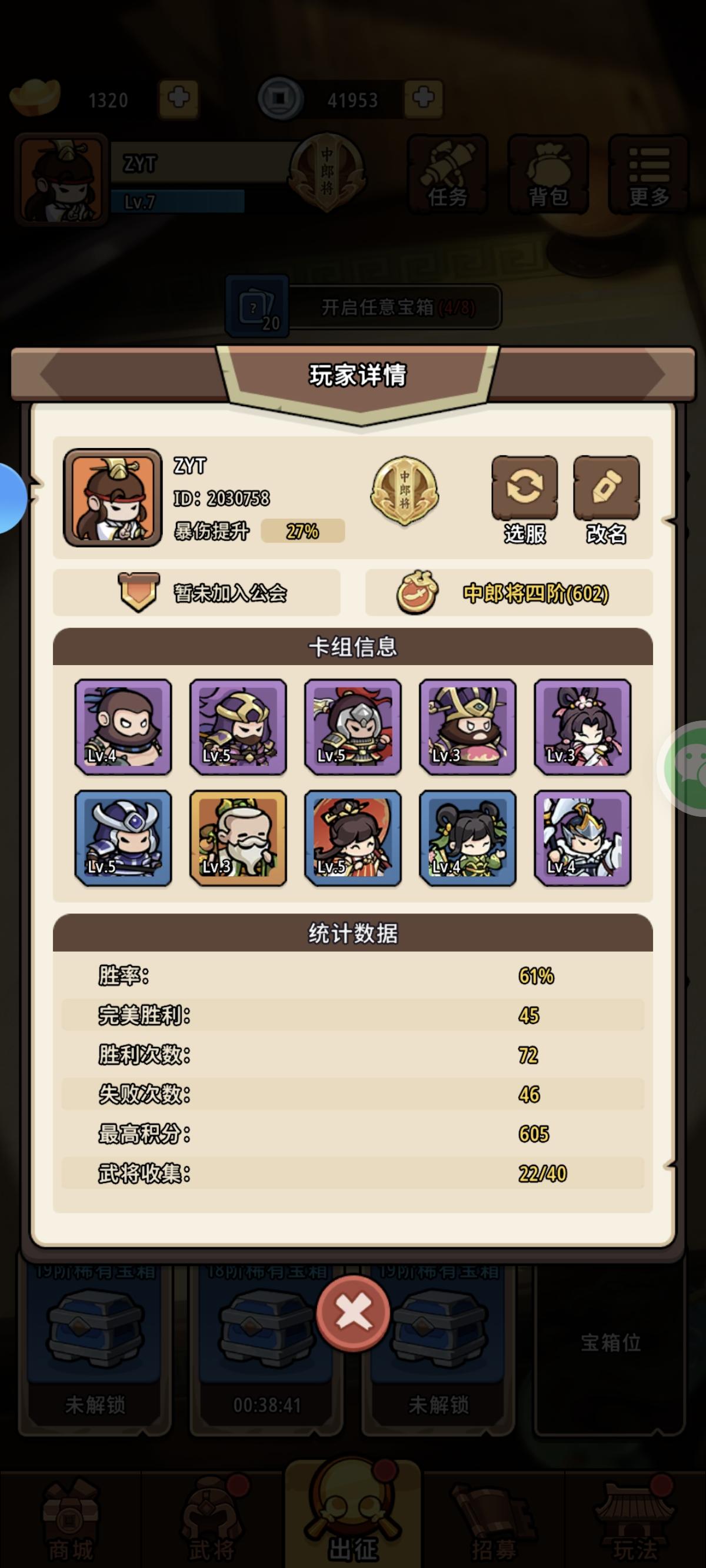 本人诸葛4级(没机会上场)、关羽3级(1级就够),纯平民阵容一镜到底推汉旌。