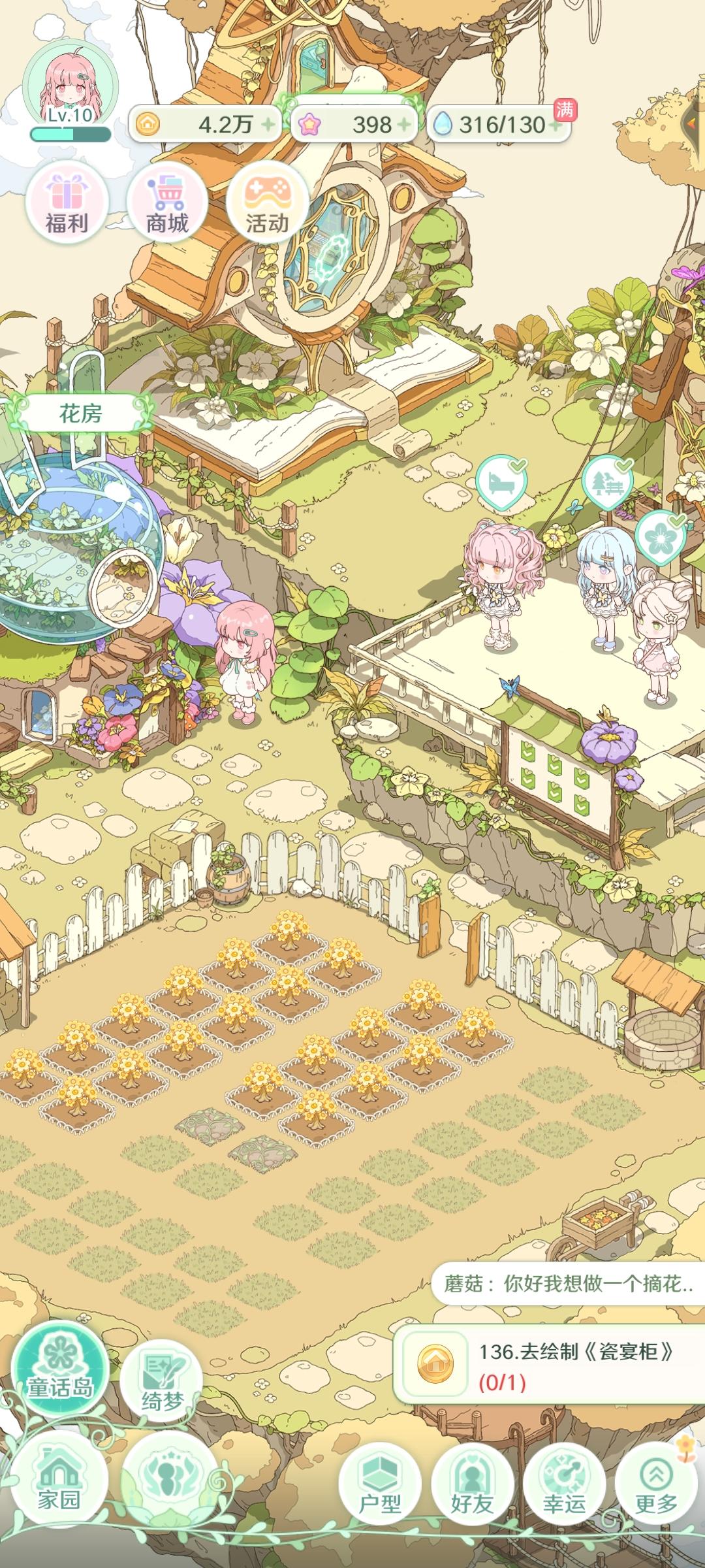 它的主要玩法就是培育花种花,然后完成各种的小任务,升级获得更多的图纸装修房屋,然后再去完成订单。