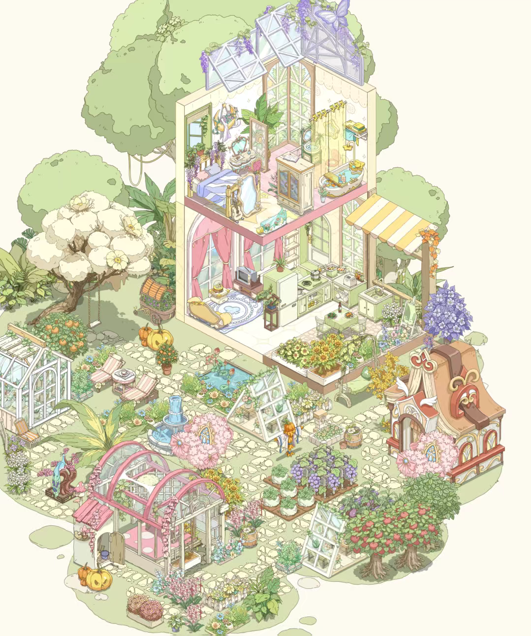 大家好。先给大家介绍一下《童话师》。这是一款(辅)种花 +(主)装修 的游戏。能够获得收获的乐趣也能够体验装修万物的快乐哦。这几天玩下来真的很爽,特别专注。(虽然还有些bug,但有一说一这款游戏装修自由度真的很高! 期待官方后续的更新与维修了。) 话不多说,让我来为大家介绍一下。这款游戏购买物品的途径由这几个组成。🫧 金币 用于购买土地和金币商城 。⭐️星币 用于
