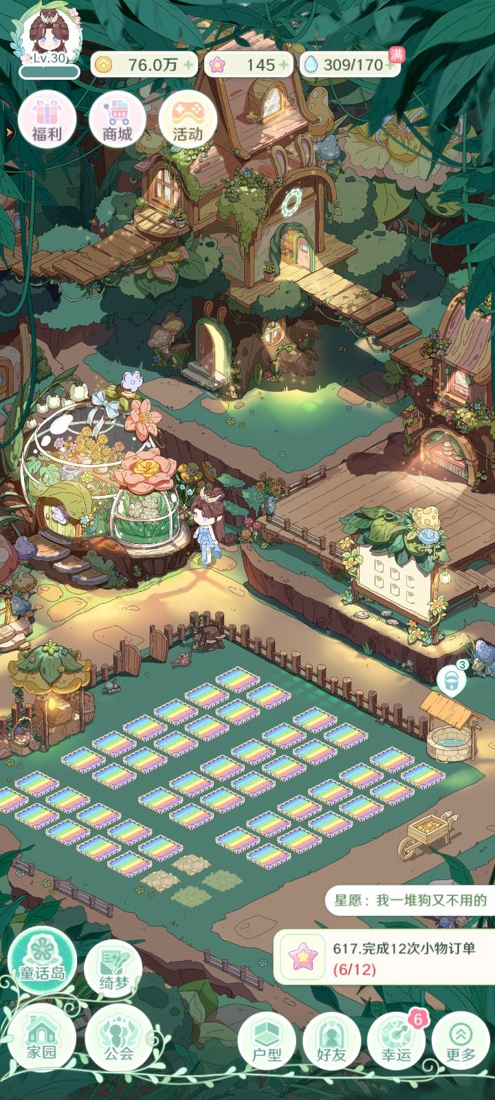 首先,画风和音乐很对我胃口,整个游戏的色彩也符合我对童话世界的想象,各种家具总体看上去很梦幻很童话。就目前首测体验到的功能而言,我是愿意继续玩下去的。然后就是个人对于游戏的一点意见:1、关于家具细节的表现。论坛很多人都提到了,画面太多线条了,线条也很细,细看就不太和谐。细节的表现处理可以参考花朵,花朵多是用同一色系不同深浅的颜色来表现,观感上就比家具要好很多。2、关于种花,希望在种花时增加一