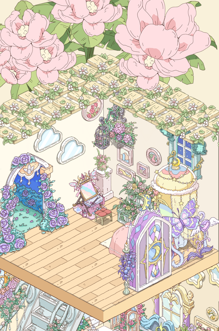 装修了一下午,终于装好了!真好看二编:昨天家园码次数用完了,今天在p2附上家园码#游戏日常 #发现好游戏 #童话师 #童话师内测