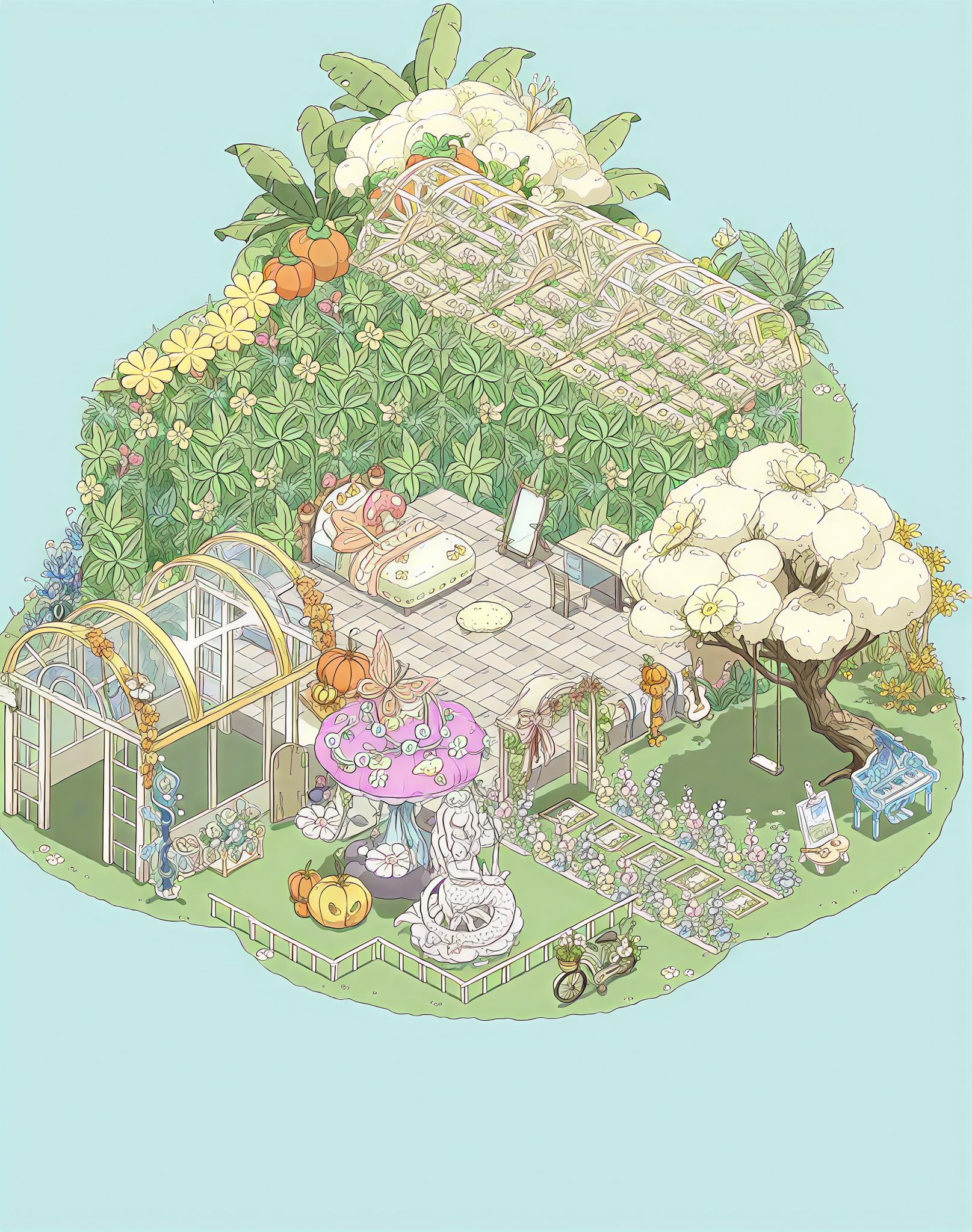 ID:青山在自然平安图④:家园造景码[5-NCFB]介绍:五彩缤纷植物园,七色彩虹,童话小屋。#童话师#绮梦家园