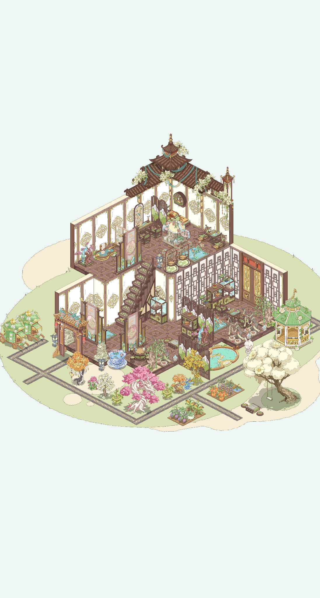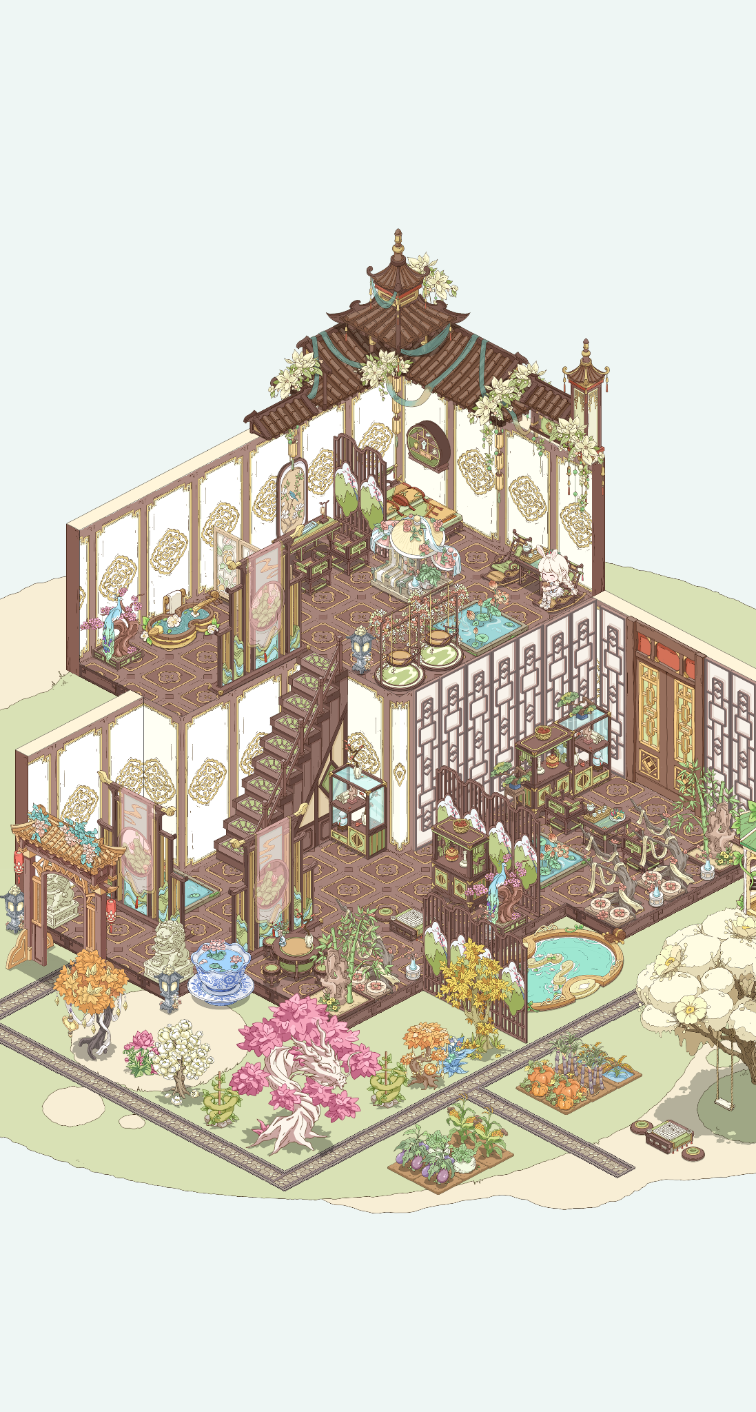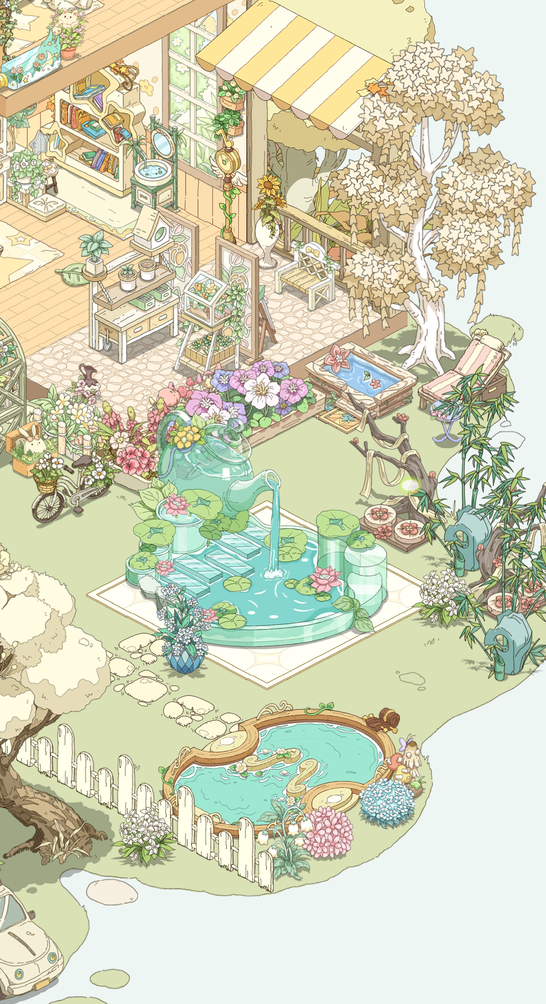 今天上线拿到江南砚居套装就迫不及待开始装修了,刚开始感觉家具有点少,房子有点大不知从何下手,但是装着装着想法就多了起来,最后结合其他已有的中式家具打造出这样一套装修,既有马车相送,又有露天温泉,这怎么不算大户人家呢希望中式风格等我家具能摩多摩多,另外中式城景水榭楼台也要跟上来哇,游戏画风真的太好看了!!!#童话师 #童话师内测 #童话师扉页测试 #装修分享