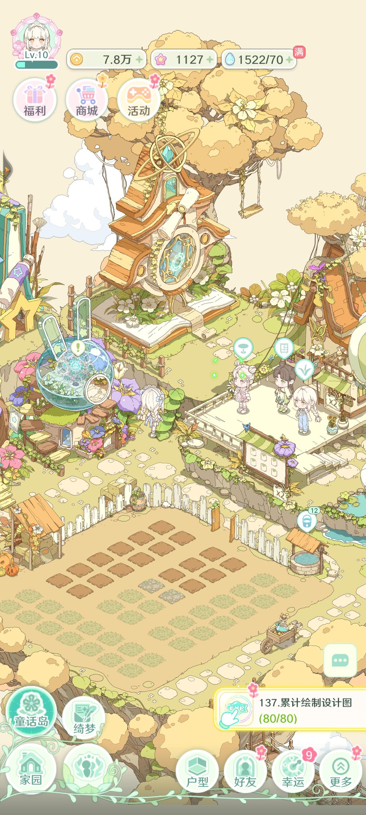月卡免费体验,感觉有月卡直接无脑点点点,有个很喜欢的点就是接完订单可以一键种植不需要在费脑记接了什么订单,还缺什么,到现在种植依旧没卡。画风挺治愈的,喜欢开厂那个动画还有解锁新花的动画,感觉真的花长出来的感觉。有没有玩过动物的城的感觉画风和那个差不多。小人衣服很好看,还是免费给的,就是脸感觉胖胖的玩法上就是种植交订单,然后装修,那个过关的话,可以自己装修的太少了,只有系统推荐的,而且评分也是