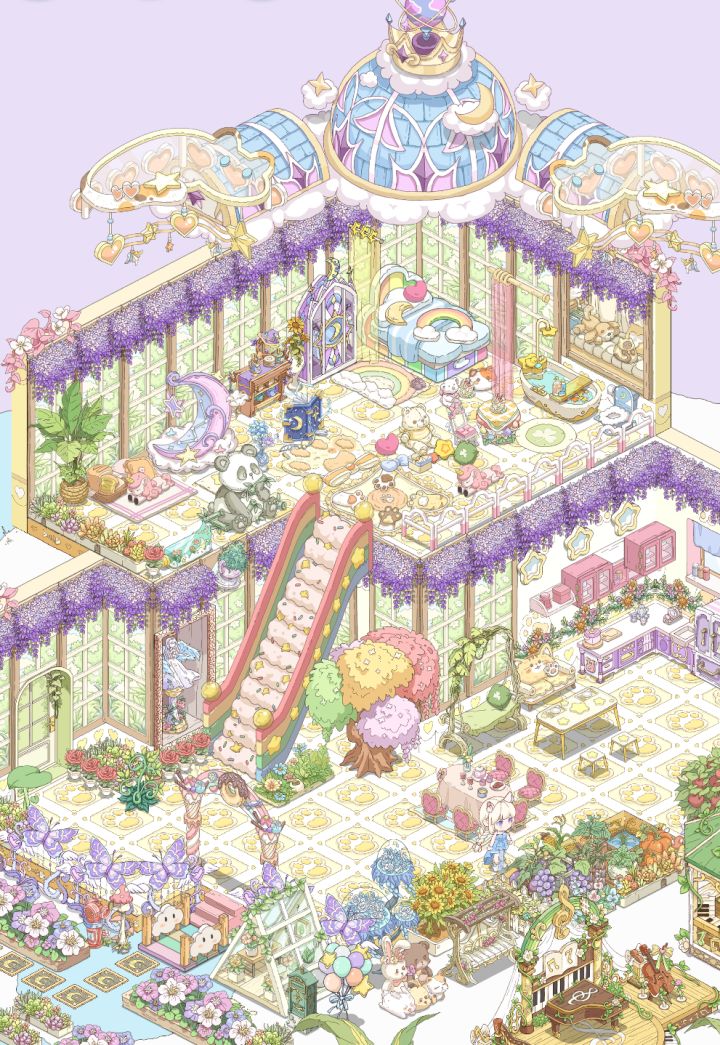 ID:青山在自然平安图④:家园造景码[5-NCFB]介绍:五彩缤纷植物园,七色彩虹,童话小屋。#童话师#绮梦家园