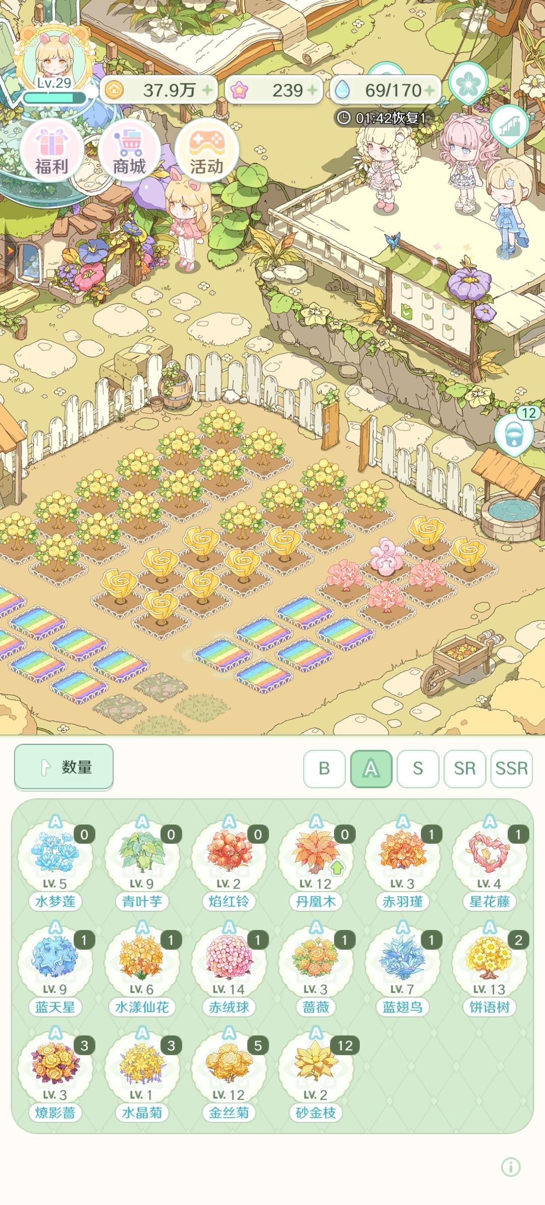 画风和背景音乐真的太对胃口了,因为是测试所以很多水滴去浇花,但是如果水滴不够,花成熟的时间未免太长了,而且水滴浇花功能还需要优化一下,一不小心就顺位把快成熟的花浇了,种花也是,一不小心全种了同一种花,还有ssr花的获取方式,感觉后期需求量还蛮大,但是的确不好攒。家具风格我也很喜欢,但是感觉装修功能可以再优化一下,好像没有一键收回所有家具的功能,而且很多ui也很杂乱总之还是很期待游戏公测的,希望