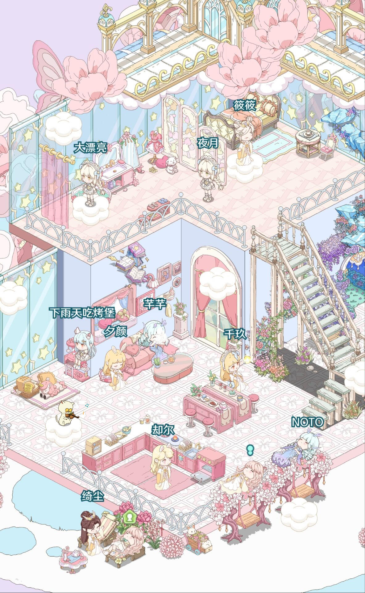 家具互动和形态变化好少,有的床竟然不能躺,这是没想到的。有些感觉很好看但差了点灯光的效果或灯光不明显。感觉应该可以更好看。点击人物行走和人物与家具互动的时候,那个绿色标识好丑好丑,这么好看的家园画风竟然有这么丑的存在,感觉有点割裂。楼梯问题如图所示。房子里的楼梯好大好大,竟然可以放在房子里,楼梯能不能适应大小一下,装修时楼梯也很妨碍视线,能不能搞个楼梯虚影的按键?布置墙后装饰时能不能有一个自