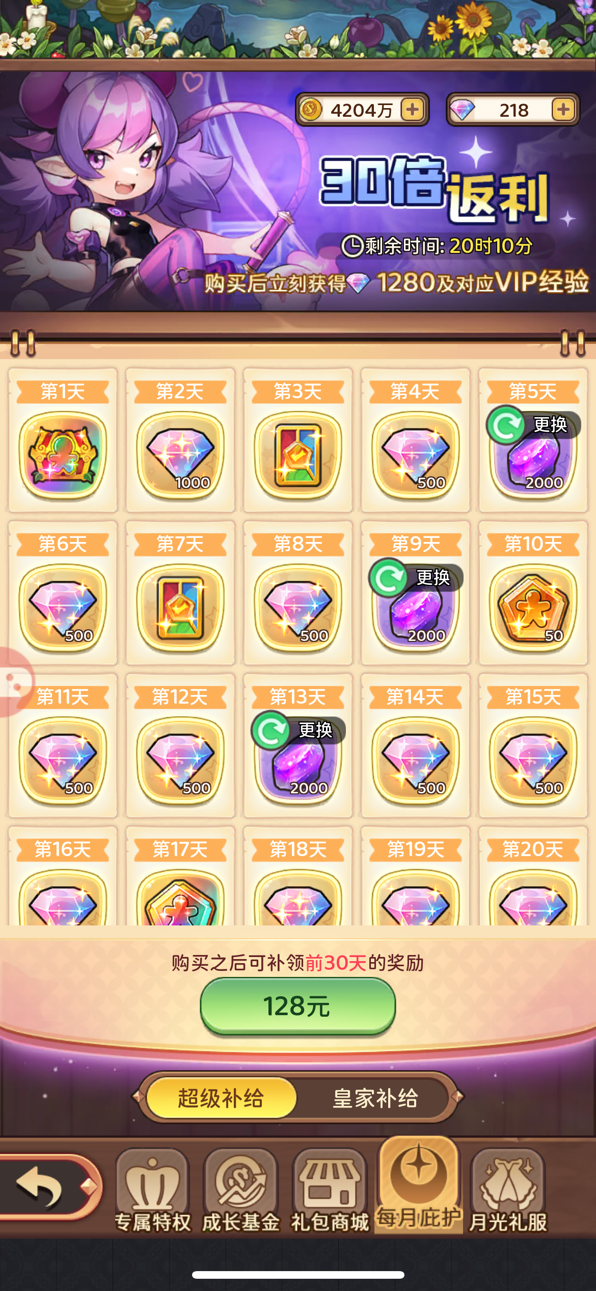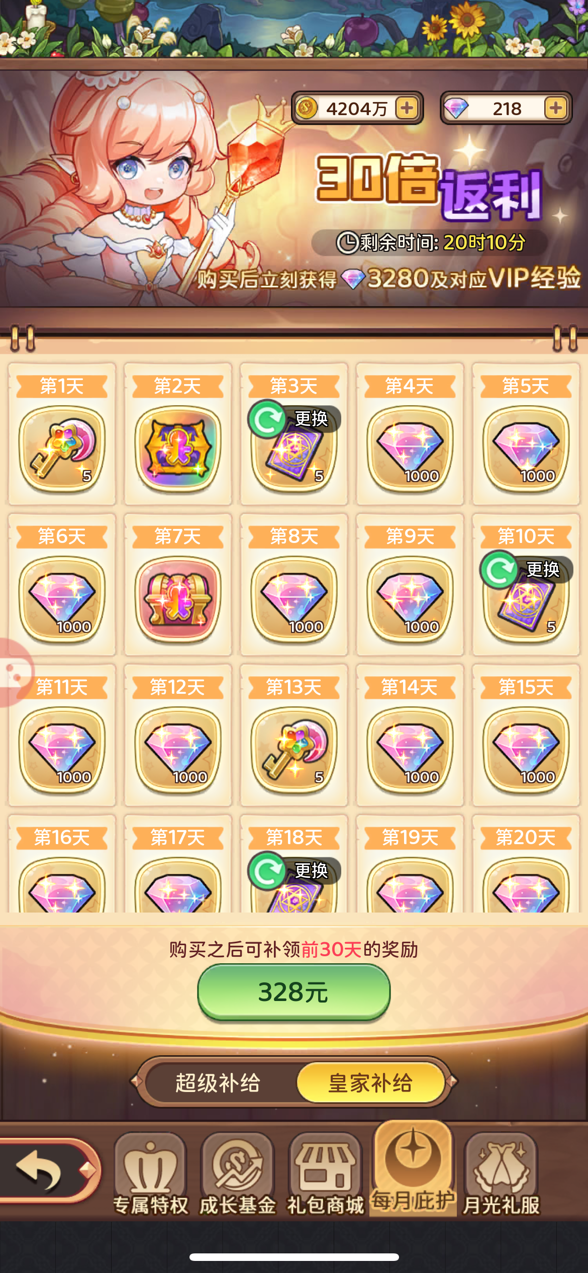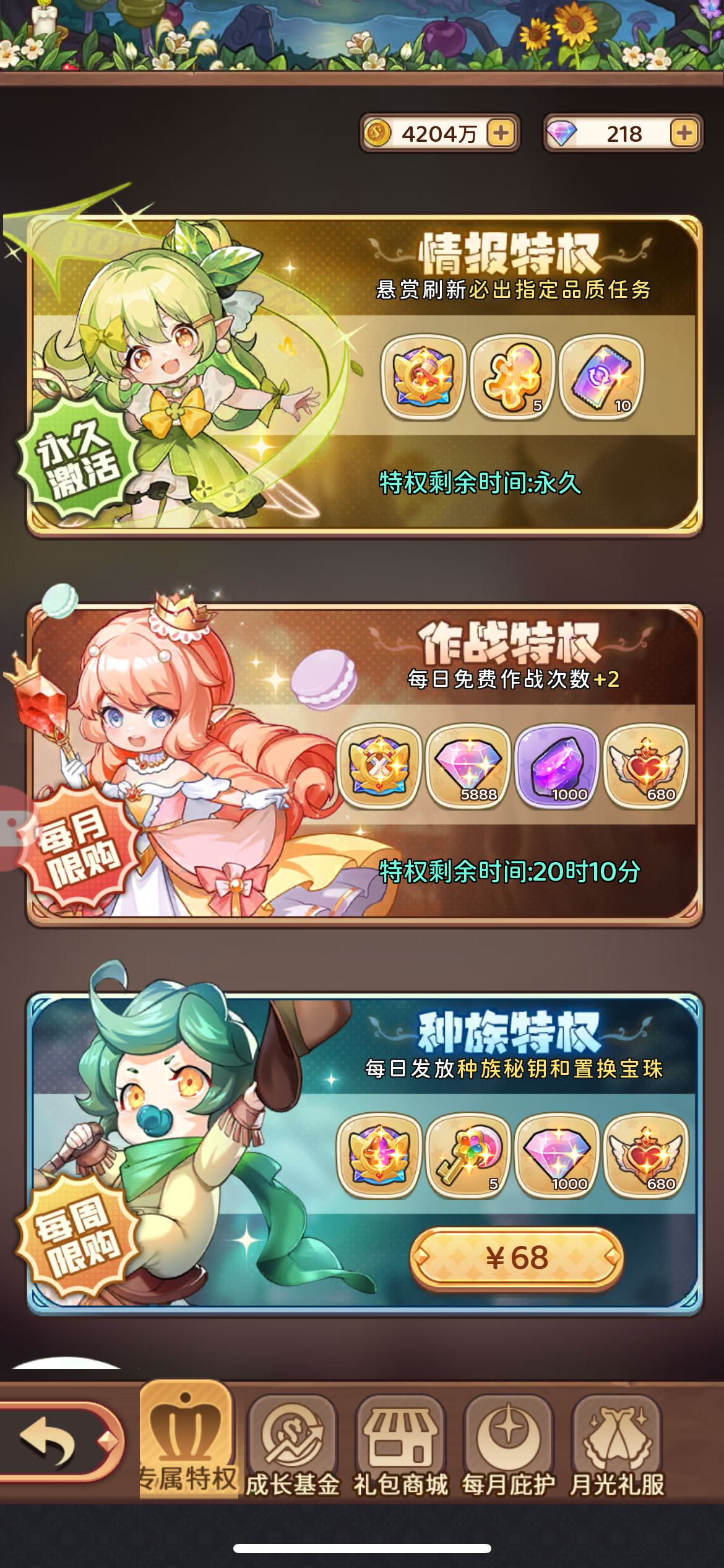 大部分游戏里的高性价比氪金点通常在长线礼包中,所以先从这些礼包说起。成长基金/地心基金:氪一个可以用很久(只要你有规划),钻石这个东西是非常非常缺的,性价比很高。推荐指数:⭐⭐⭐⭐⭐庇护:128档的很鸡肋不如氪地心或者多留点预算上328档,328就非常值得手头充裕的玩家去买能让你的不会卡进度。推荐指数:128档:⭐⭐328档:⭐⭐⭐⭐永久的长线礼包说完了再说一下特权。快速作战:我是觉得