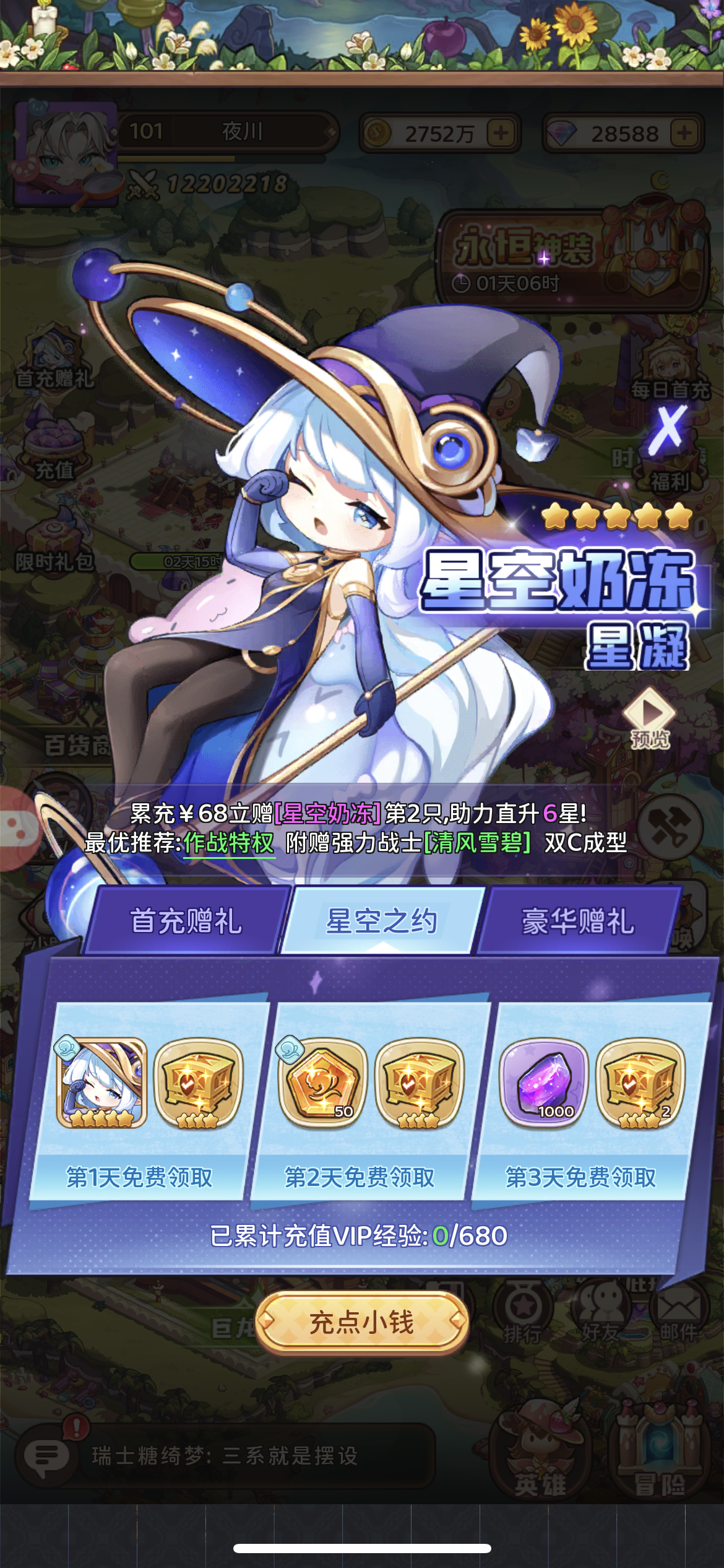 1、这游戏零氪能玩,而且很舒服,但是资源进度肯定比氪佬慢很多,我5/6kw战力的时候氪佬都一亿多了。 2、神话卡里面有很强的,比如霹雳跳跳糖群伤,6元首充的法术群伤,清风雪碧的速度连击,还有暴风雪的群盾。3、白嫖也可以获得很多光暗资源,自己慢慢攒吧,首推提拉米苏,复活太强了。榴莲也很强,我没玩,别人玩了吊打我,后悔。vip等级可以白嫖经验的,我是真一毛没氪暂时没想到别的,有问题可以提,我6月