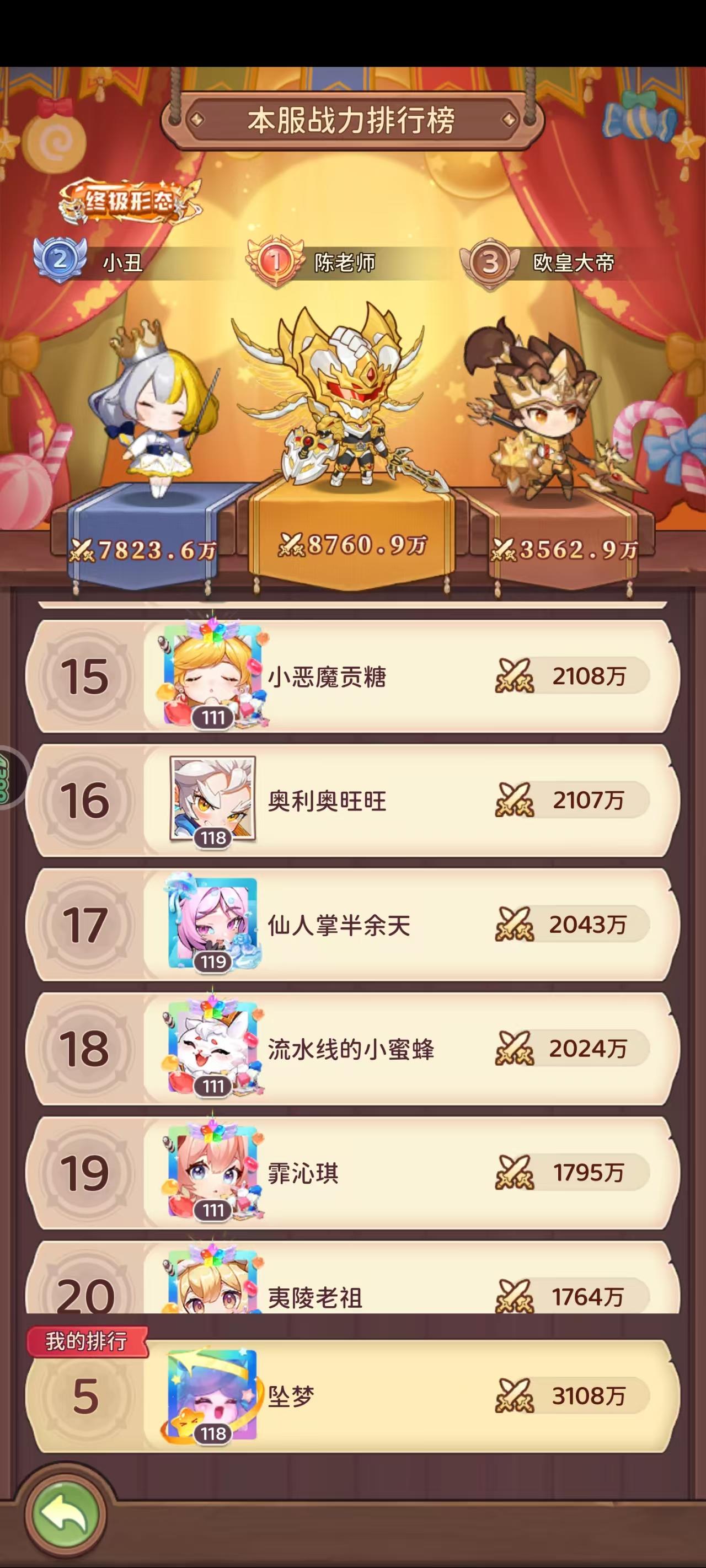恭喜以下5位镇长大人获得本次活动奖励~~请联系我们官方客服QQ:2149472846,按照获奖要求兑换奖励噢~获得100元京东卡的镇长大人:三刻百回眸、温柔只给你、云雾之城获得费列罗臻品巧克力(15粒)的镇长大人:月下成双、熙祝各位镇长大人游戏愉快~亲爱的镇长大人,《冒险守护》11月14日10:00正式开服!《冒险守护》×《铠甲勇士》联动版本同时启动!帝皇侠携光影之力降临糖果小镇,与你