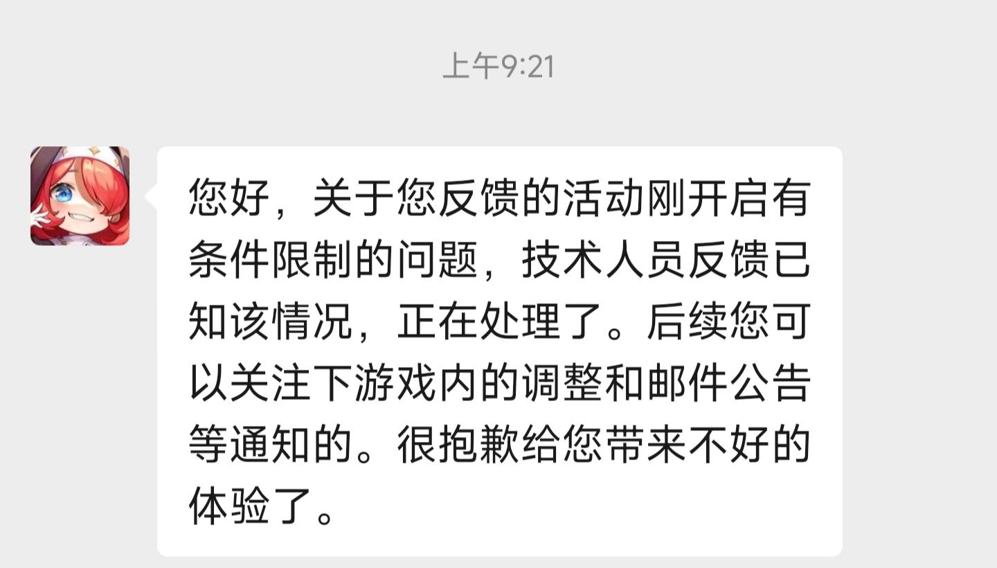 #冒险守护 #策划听我说 关于最新活动的客服回复,头一次见到游戏这么整。搞精英主义吗,有点意思。现状就是不充值68元快速作战经验月卡的人无法参与活动。即使能够参与,奖励并不多,这都无所谓,但是让一部分后富的群体看着无法参与,这是对一部分人的纯侮辱吧?客服回复:您好,关于您反馈的活动刚开启有条件限制的问题,技术人员反馈已知该情况,正在处理了。后续您可以关注下游戏内的调整和邮件公告等通知的。很抱歉