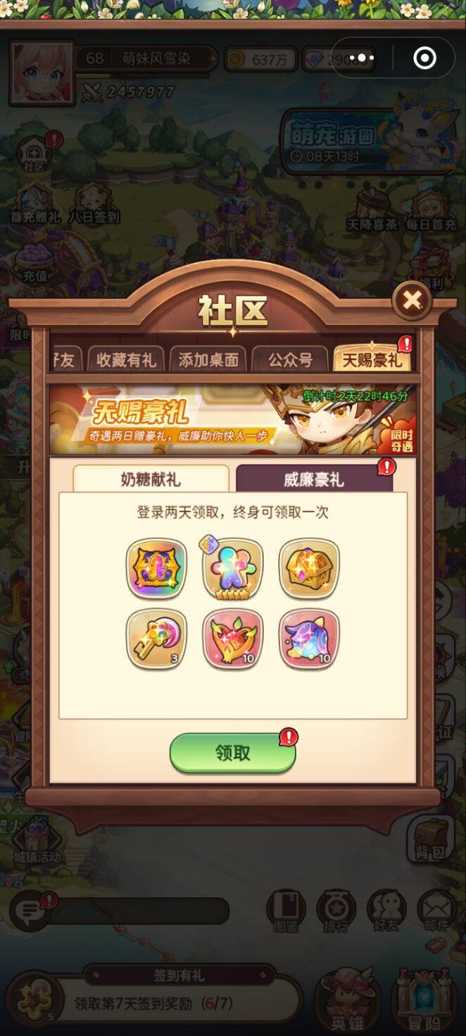 亲爱的镇长大人, 《冒险守护》11月14日震撼首发!我们准备了价值超期待的豪华开服福利,助你快速组建强力糖果战队!无论是零氪党还是大佬玩家,都能轻松起飞~ 下面就来看看有哪些必领福利吧!🔥 首发必抢福利一览1、千抽狂欢+神话暗英雄+双神话英雄(自选)(必领!)✅ 预约好礼:三系传说英雄自选*1,高级模具*10,红色幻灵碎片自选箱*5,种族钥匙*3,
