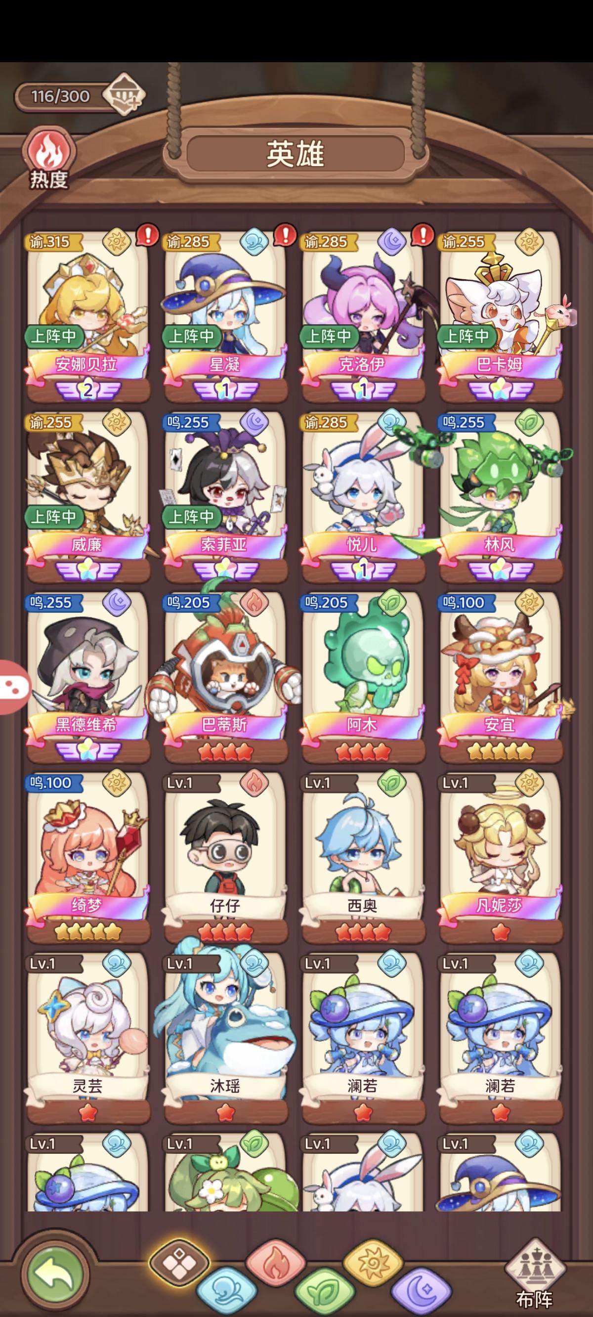 为了对应上一篇,专门留了两个截图,表示一周内的提升:巧克力11星5觉—12星五觉,黑森林10星5觉—11星五觉,榴莲10星—11星,比巴卜10星—11星(星凝回退)。另,今天第五十天,主城13级,麦田守望者升级完毕。目前手上已没有过多的囤货,是时候沉淀一段时间了。#冒险守护