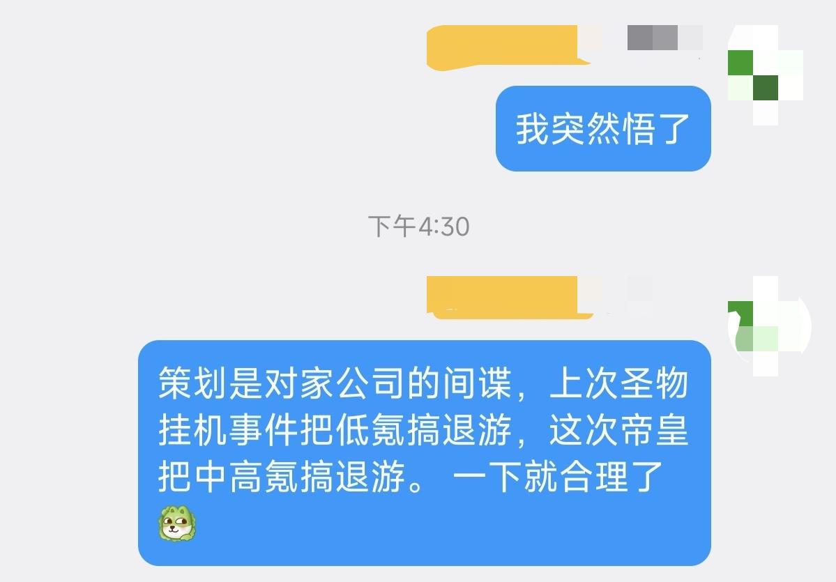 我不明白为什么大家都在谈论着更新爆雷,大佬退游。仿佛这两次更新注定了凶多吉少?两个月前 游戏公测,本游氪佬滔滔不绝,没有同类游戏可比,真可谓占尽天时。那种勃勃生机 万物竟发的境界 尤在眼前!短短两个月后 这次更新竟至于一变成而为本游葬身之更新了吗?不管怎样讲,我是策划 你们是玩家,优势在我!难道ch是天才?