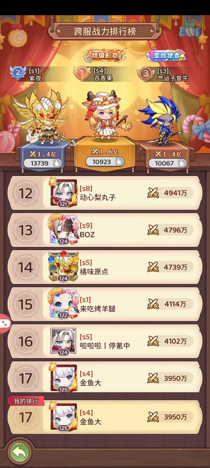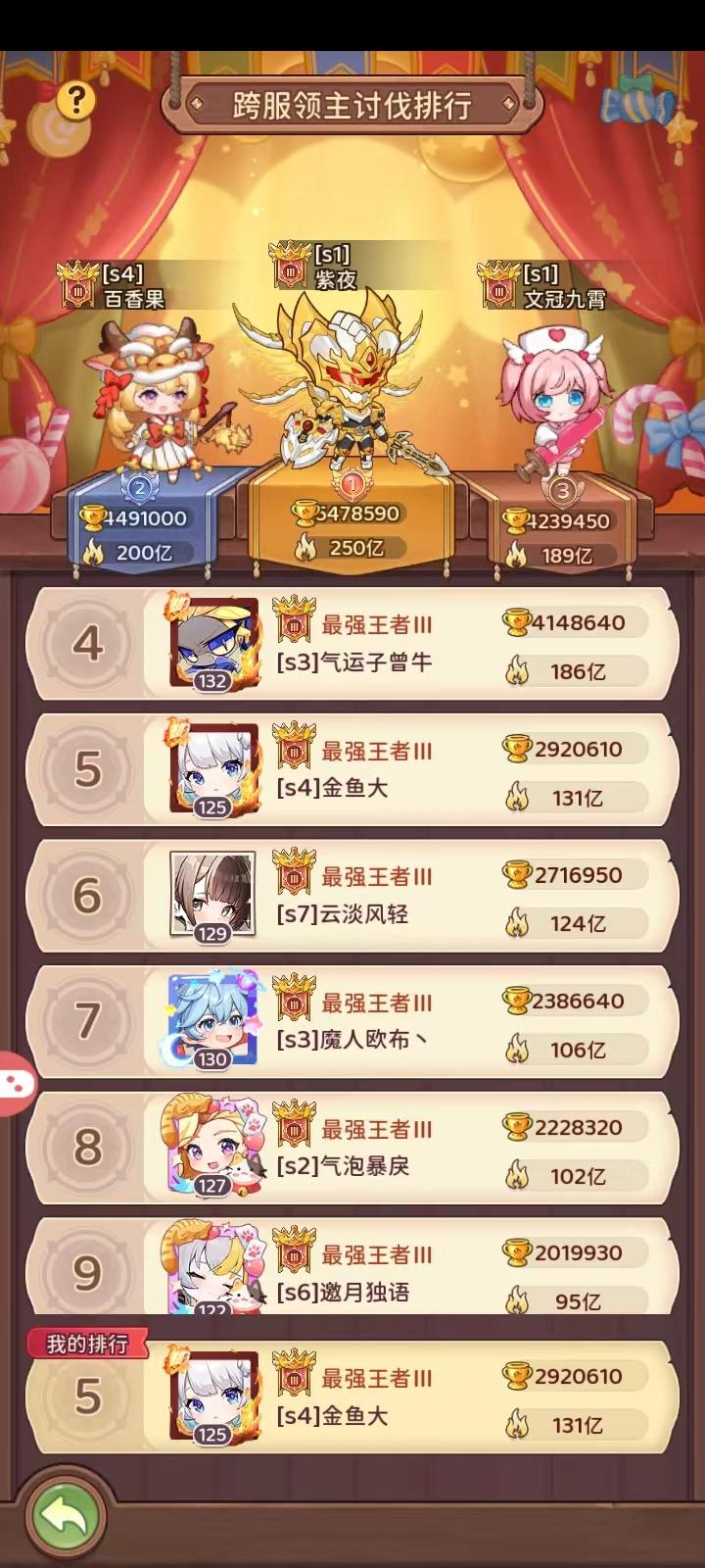 可以看到加了叹号。因为我今天打到一半才发现s2是在s1基础上调整了数值的。因此需要重新测算(太草了,不会之后我每赛季都要重新测吧)。还是第5,不过和第六拉开可观的差距了。前面两个BOSS打得都不错,打时空的时候一刀忘保存配队了,出现失误,不然还能多打一阶BOSS(18500奖杯)。前四都是上亿战力就不是我能比的了(文冠大佬明显有进步,估计有点思路。不能被甩太多)然后讲点有用的。一。最基础的有