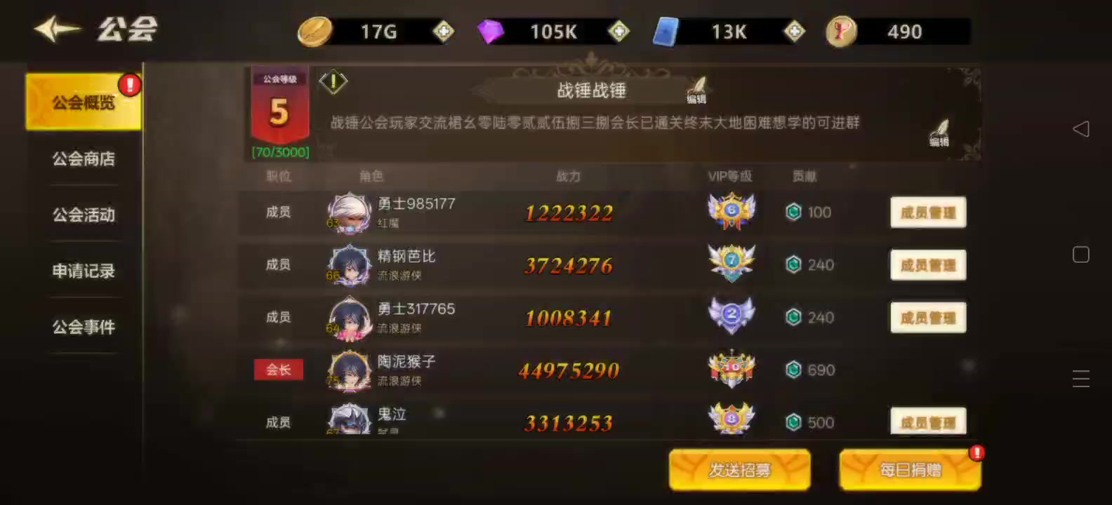 无双之王,战锤战锤收人,为了更快的把公会弄到高级商店 每天不强制要求点卷贡献,但是金币贡献必须要捐,紫钻量力而行不捐也没事。。。#游戏日常 #无双之王