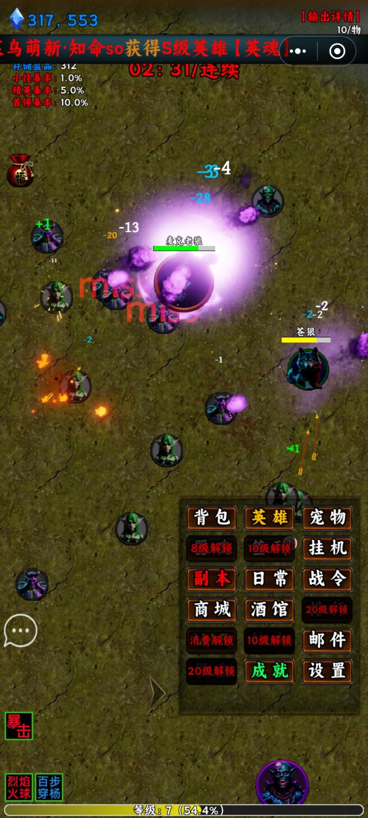 养成主要是装备、英雄和宠物,后续可能还有养成,解锁较慢。