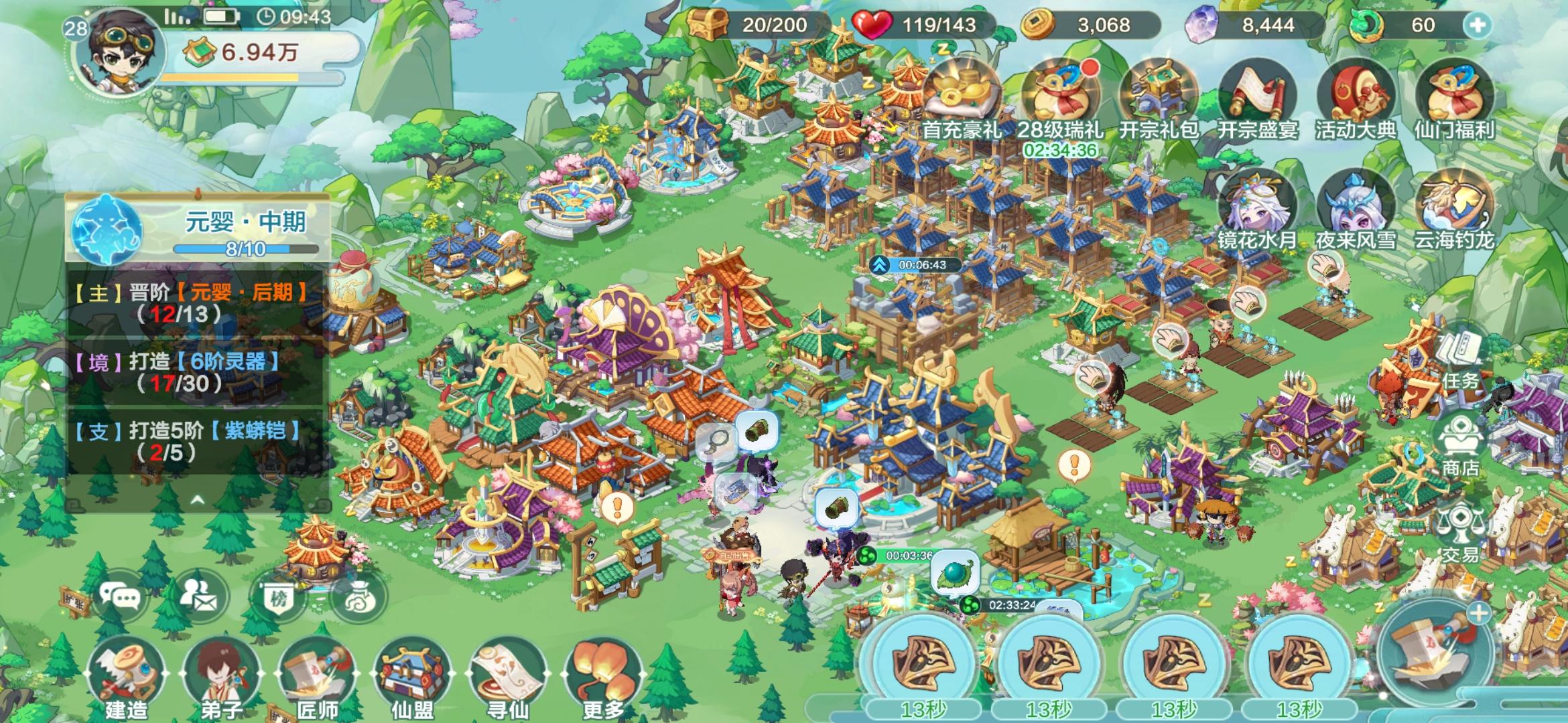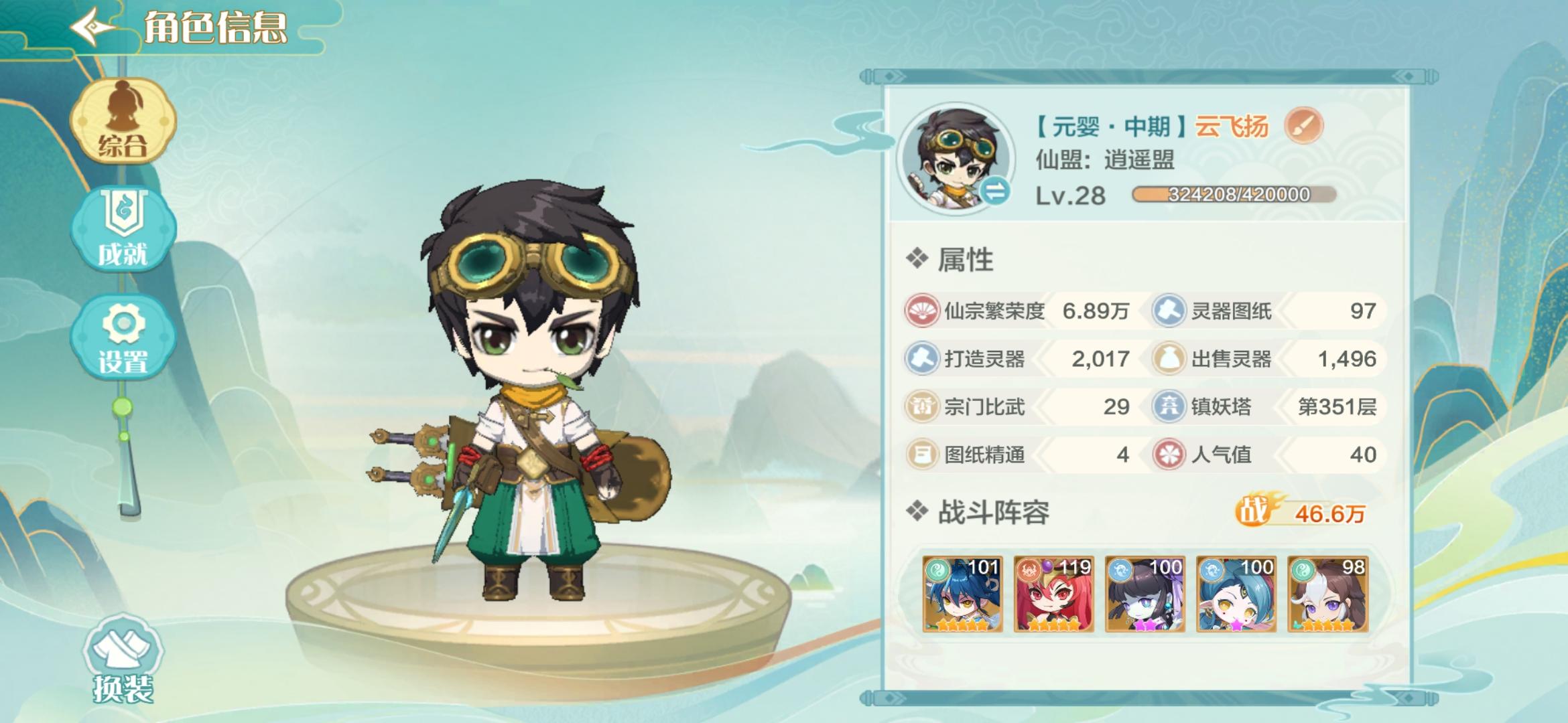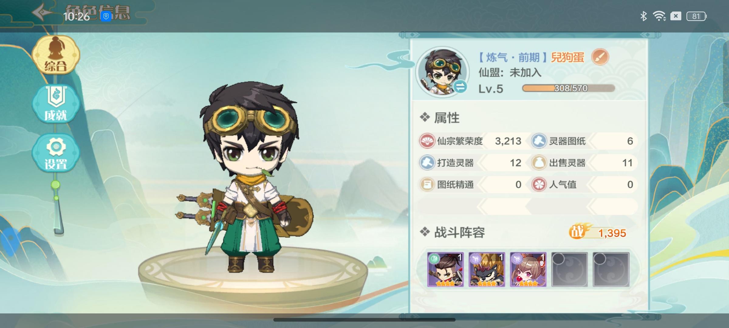 游戏画风很可爱,有点种田经营的类似玩法,也有斗法打架玩法,肝帝很适合,游戏很有意思,通过打造装备卖金币打造属于你的宗门,抽卡培养弟子来战斗还有走格子打怪的主线玩法