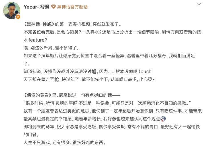 游戏科学全体成员,祝大家在马年,食能知味,寝能安睡! 本视频是为马年春节专门录制,与游戏实际剧情无关,切勿轻信。
