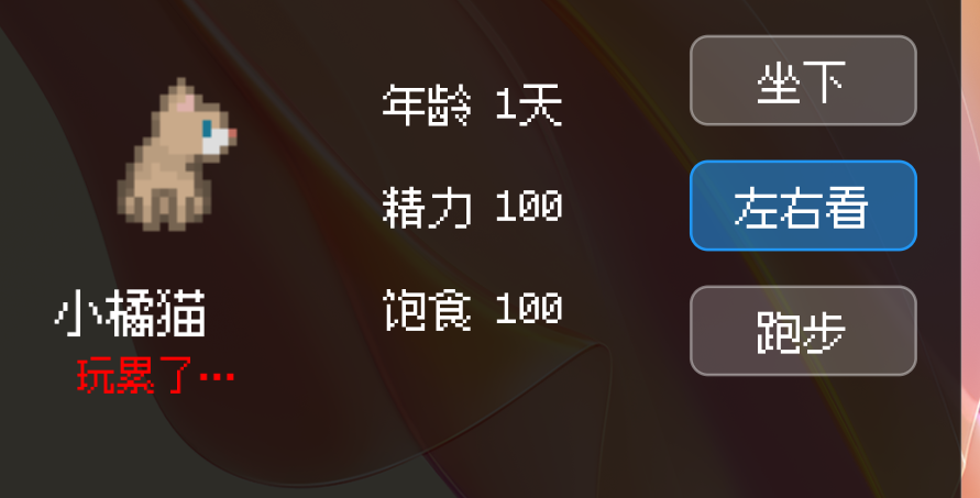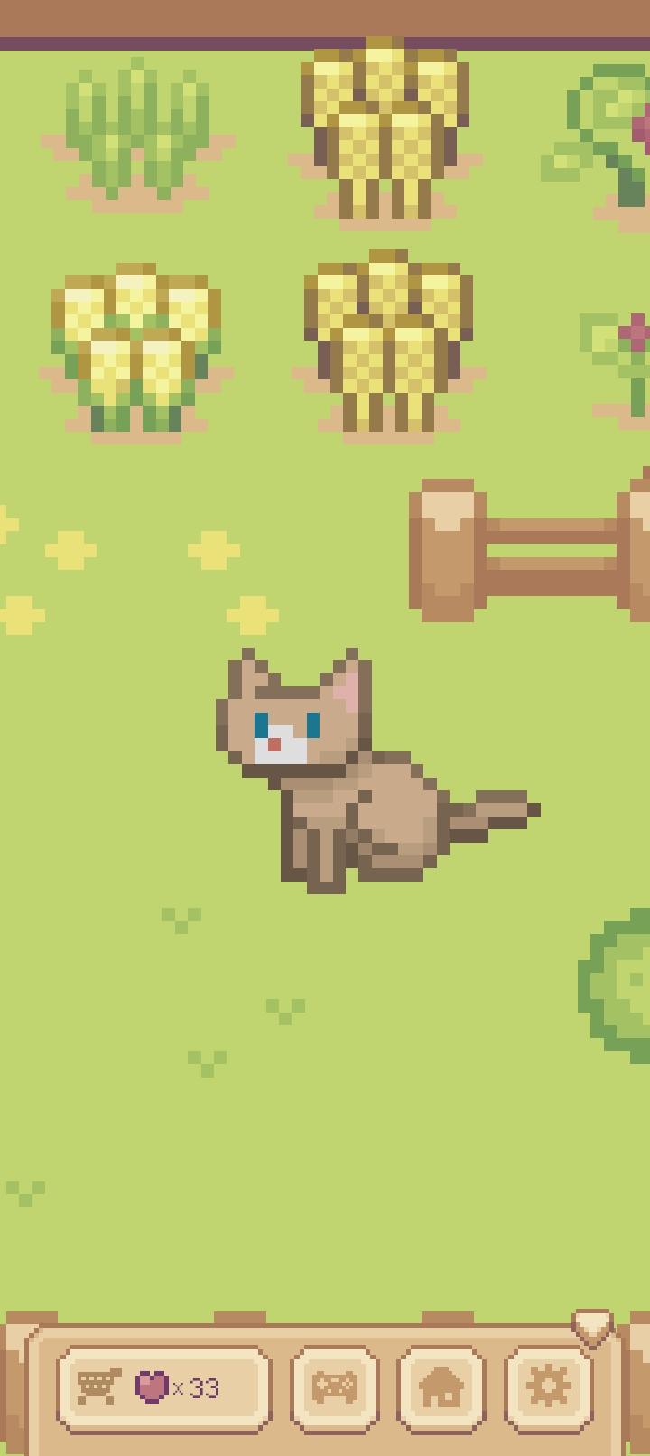 像素风好评!😈是个很轻松养老的放置游戏,纯放着就好了~记得给植物浇水,可以连浇两次;猫困了开屏一下就能睡满;中心的猫盆变透明了就是空了,点一下再点弹出来的界面上的一个点就能补满;猫玩累了后,逗猫棒和小老鼠都不能吸引猫了;摸摸猫应该只能摸一下,摸多了大概要炸毛了。剩下的就是放置就好了~😈🌟发帖存图#游戏日常 #单机游戏 #发现好游戏 #Miao屋