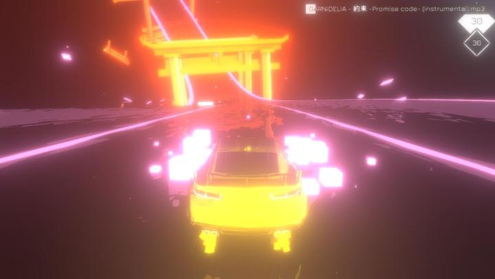 游戏中的赛道有三条,由音乐的旋律和节奏生成宝石(即白色块状物),每一颗宝石根据音乐的变化出现在三条赛道的某一条上,标准和困难模式中还会出现障碍物。游戏过程中,所有的光影变幻、宝石出现的位置、赛车的行驶速度,都是根据当时所播放的音乐的旋律和节奏实时生成的。